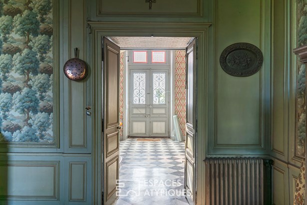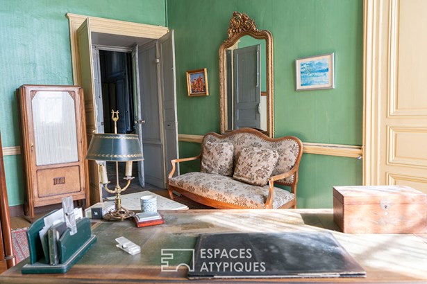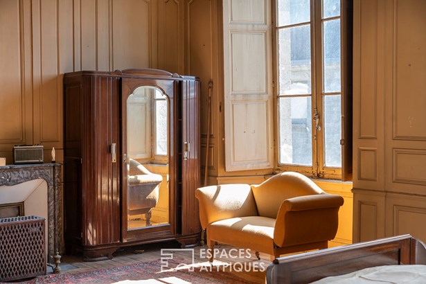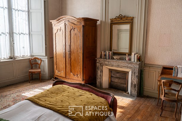 Upon entering, a monumental wooden staircase sets the tone and invites you to discover 15 rooms bathed in light thanks to a ceiling height of over 3.80 m. The adjoining living rooms, adorned with period fireplaces and solid parquet floors, offer a warm and friendly atmosphere, ideal for entertaining or sharing moments with family.