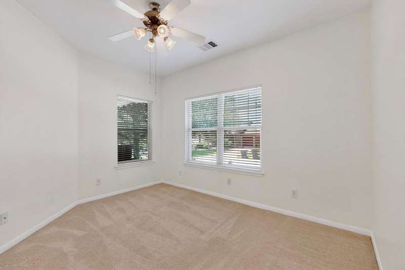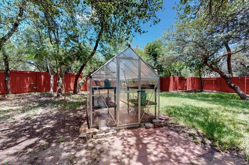 Beautifully updated kitchen showcasing a brand-new spacious center island, granite countertops, and a stainless-steel dishwasher. The home also features an updated primary bathroom mirror and a freshly painted laundry room-thoughtfully designed to impress from the moment you walk in!Welcome to 360 Canterbury Dr, a beautiful single-story home on a desirable corner lot in the heart of Belterra. Built by Streetman Homes, this well-designed residence features 3 bedrooms, 2 full bathrooms, a dedicated office with French doors, and a bright, open layout with high ceilings and abundant natural light. The kitchen offers solid Corian countertops, stainless steel appliances, a large center island, and ample cabinetry. It flows seamlessly into the spacious living and dining areas, creating an ideal space for entertaining. The oversized primary suite includes a charming bump-out sitting area, dual vanities, a soaking tub, and an upgraded frameless shower with real mother-of-pearl accents, along with a generous walk-in closet. Step outside to your private backyard oasis, complete with a patio, extended flagstone patio, party lighting, greenhouse, and additional power outlets for added convenience. The fully fenced yard provides a peaceful outdoor retreat and space to relax or entertain. Major recent updates include a new roof (2023), new HVAC system (2023), and brand-new energy-efficient windows in the bedrooms. Included in the sale are an LG oversized high-efficiency washer and dryer, as well as a GE Cafe French door refrigerator with a built-in hot water dispenser. Additional features include outdoor security lighting and a spacious two-car garage. Located just 30 minutes from Downtown Austin and zoned to top-rated Dripping Springs ISD schools, this home also offers access to Belterra's exceptional amenities, including a clubhouse, fitness center, pools, parks, sports courts, and miles of scenic trails.