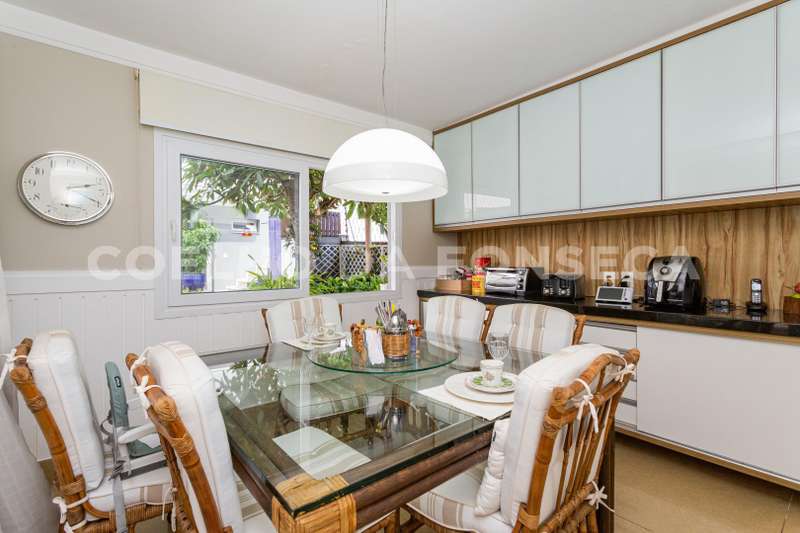 Todo o conforto que você e sua família merecem e muito espaço para as crianças brincarem. A sala de jantar integra dois ambientes, de um lado o estar com lareira, e do outro, um espaçoso home theater. Uma cozinha bem equipada e uma sala de almoço onde as refeições tem vista para a piscina e o verde da área externa. Um delicioso espaço para descanso e leitura. Na edícula uma ótima área gourmet. Quatro suítes no pavimento superior, três delas possuem ar condicionado e closet. A suíte master conta com dois closets e dois banheiros e um terraço.