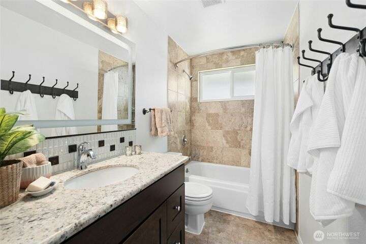 Renovated 4-bedroom/2-bath home is ideally sited on a tree-lined street between Green Lake & Greenwood. Bike 7 blocks to the lake or stroll 3 blocks to Greenwood Ave’s cafes & shops. Walk Score 89. Bike 88. 12 mins. to downtown. Bright & cheerful with freshly painted interiors & Open Concept living. Granite kitchen offers an island bar, highly energy efficient induction cooktop and stainless appliances. Enjoy morning coffee on the deck by the kitchen. Stairless entry to finished basement with bedroom, bath & bonus has multi-generation or rental potential. Create your dream primary suite? Enjoy city living AND suburban comforts on picture-perfect street - sidewalks, garage, fenced yard. Take the plunge before the Spring rush explodes prices.