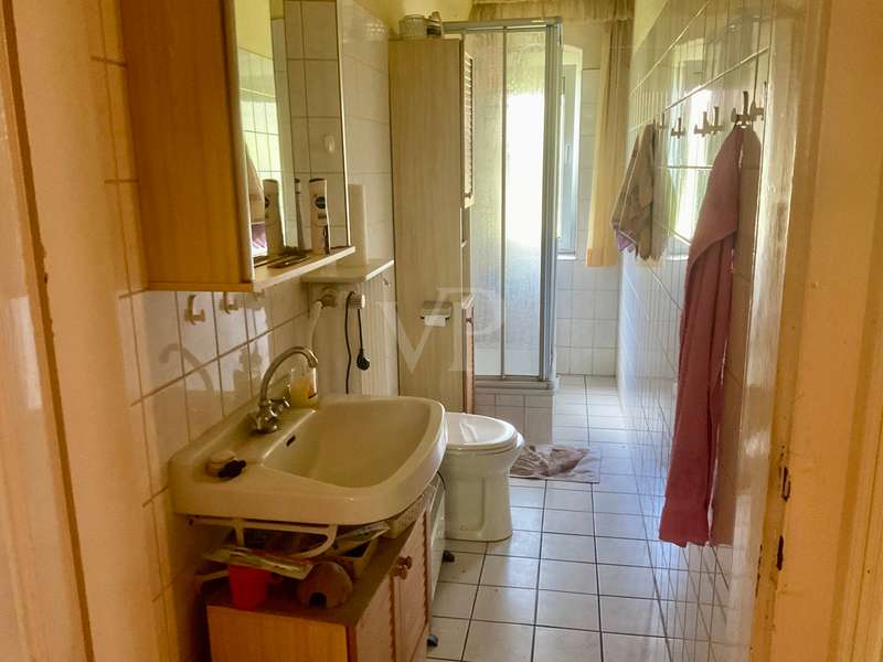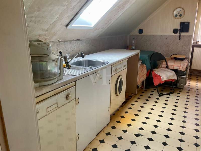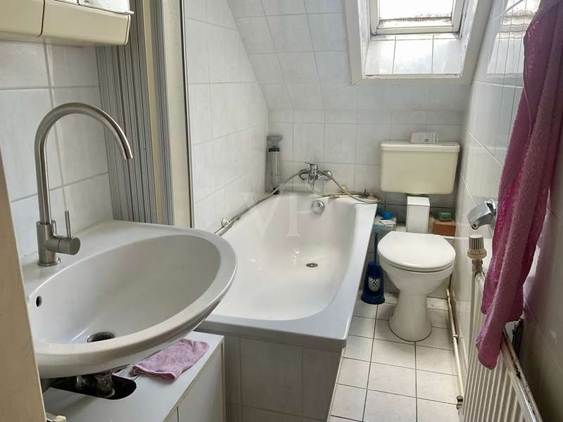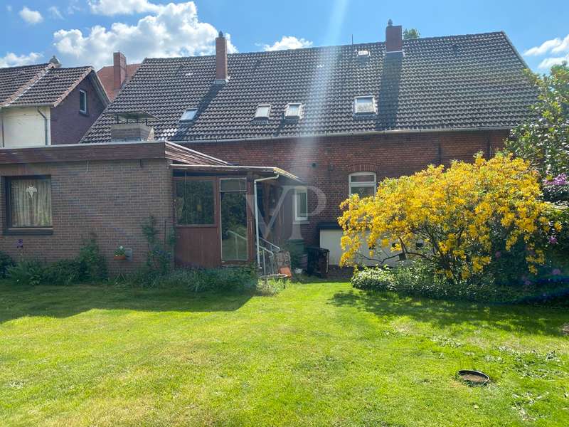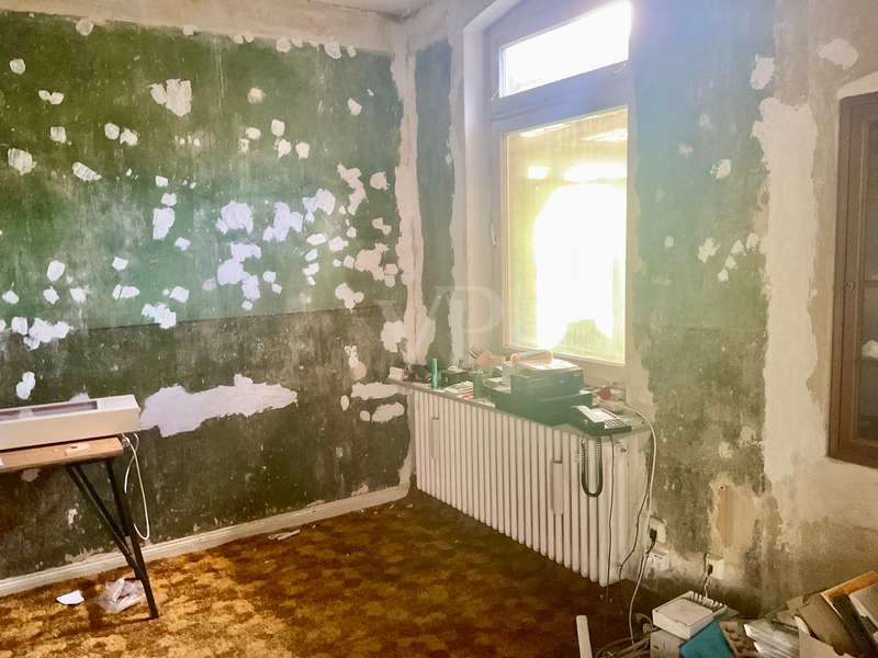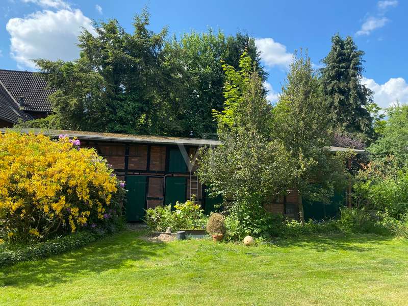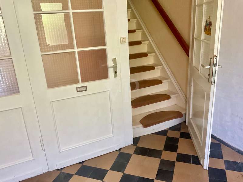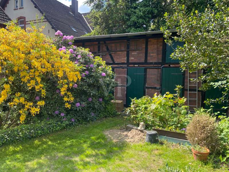 This house, originally built in 1895, was once a small farmstead. Today, only the house and the half-timbered barn remain. Today, the barn only serves as a storage area for the residents of the house. There is a parking space and a small garage facing the street, adjacent to the barn. An extension with a flat roof was built directly onto the living area of the main house in the 1980s. This serves as a conservatory/living room with a fireplace. The solid brick building, the half-timbered barn and the romantic garden form a beautiful unit. The house needs to be renovated from top to bottom and some more extensive renovation work is also required. The total area is also well suited for conversion into several residential units or as a large family home or for several generations. The garden is beautifully landscaped and, despite its inner-city location, is not overlooked.
