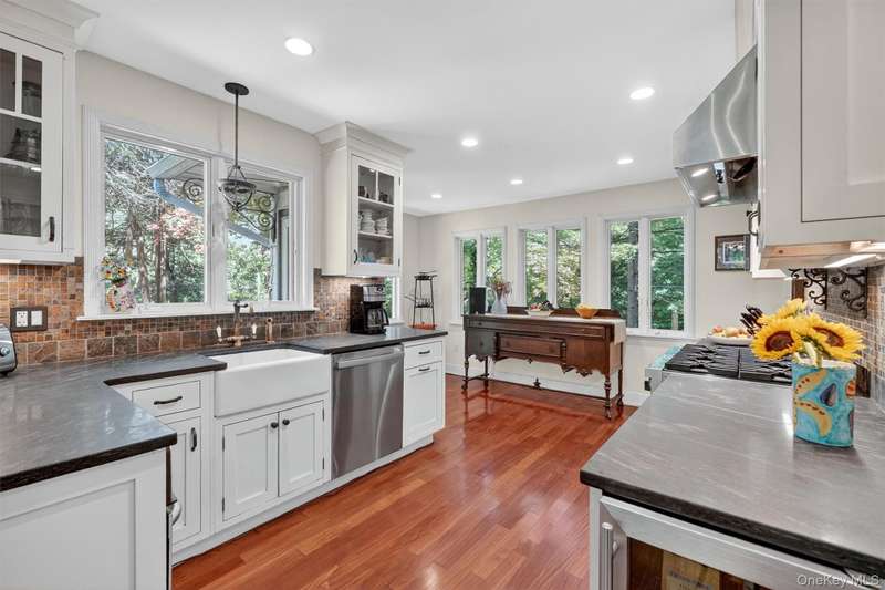 Set in a park-like setting with gorgeous grounds, this home offers a rare combination of natural beauty and flexible living. Large windows fill the rooms with natural light and showcase woodland views as well as serene glimpses of the lake. Multi-level living creates a wonderful balance of privacy and flow, with the living room, dining room, and kitchen connecting seamlessly for everyday comfort and entertaining.The well-equipped kitchen enjoys views of the woods, while the dining room opens to a stone veranda perfect for gatherings. Additional highlights include a bluestone patio at the front entrance, a finished basement with wet bar, built-in bookshelves, and a wood-burning fireplace. First floor primary with full bath for added comfort. The detached two-car garage with workshop and a dedicated office space with private entrance on the garden level of home add both convenience and versatility.Outdoors, the property is equally special with a gardening room, private kayak launch, and Furnace Brook stream flowing nearby. In addition to private lake access, the community also offers shared access, and nearby hiking trails and the Town pool are only a short walk away. The floor plan provides plenty of space to create what works best for your lifestylewhether that means home offices, guest rooms, or hobby spaces.With its natural setting, thoughtful design, and endless amenities, this home offers a rare opportunity to enjoy comfort, privacy, and connection to the outdoorsall in one extraordinary property.