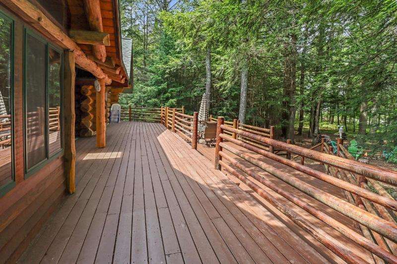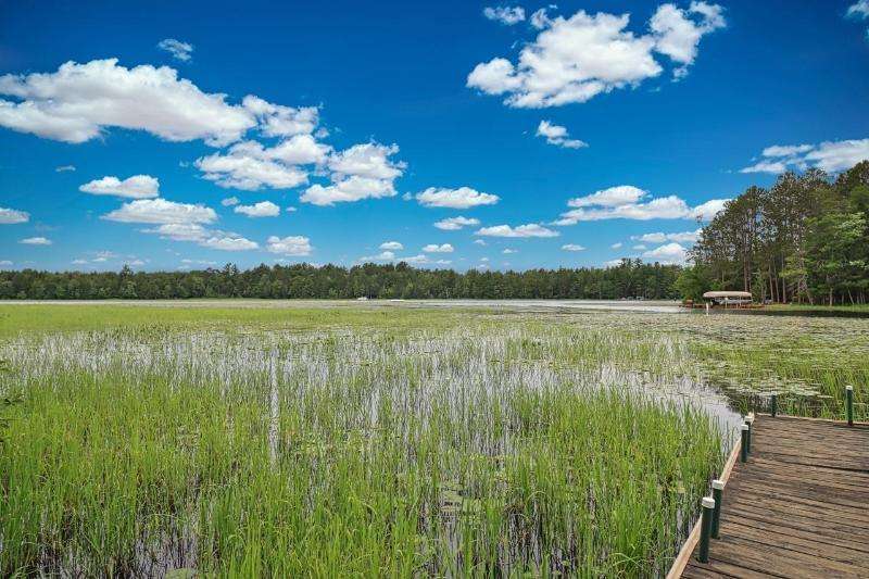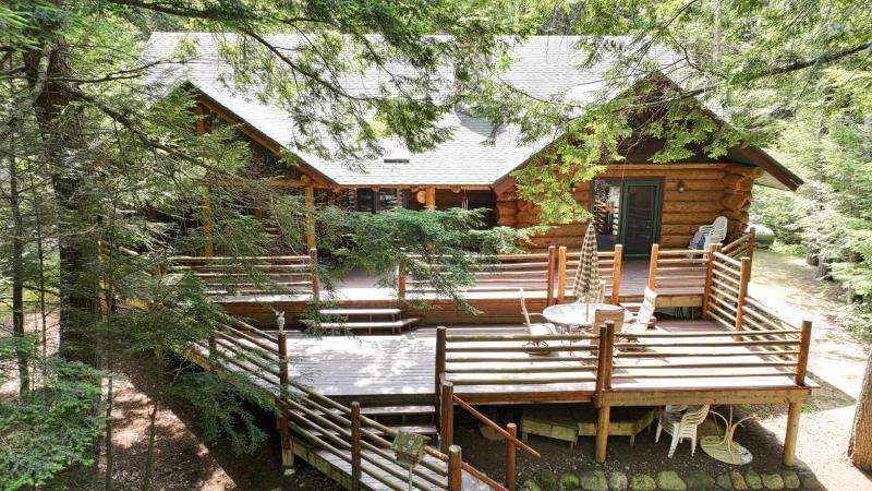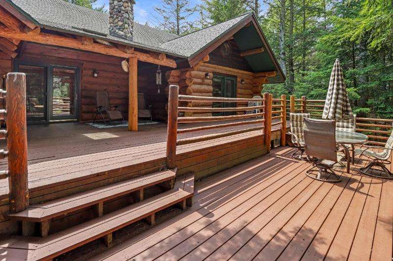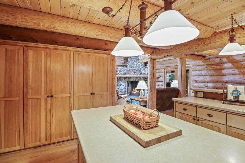 Welcome to this stunning custom hand-scribed log home, situated on 3.42 acres on a point leading to Big Lake of the Three Lakes Chain. Surrounded by state land, this property offers a peaceful setting that is hard to beat. With over 3,900 square feet of well-designed living space, this home features a main-level primary suite, a kitchen adorned with custom cabinetry and gourmet range, two-story living room, laundry area and another Bedroom and bath. Upstairs are two large lofts great for extra sleeping connected by a catwalk! The finished lower-level walkout provides space for guests and features a bedroom, bathroom and rec room plus tons of storage. Enjoy the tranquility of the three-season room and the expansive deck overlooking the 790 ft of shoreline and the private wooded lot.