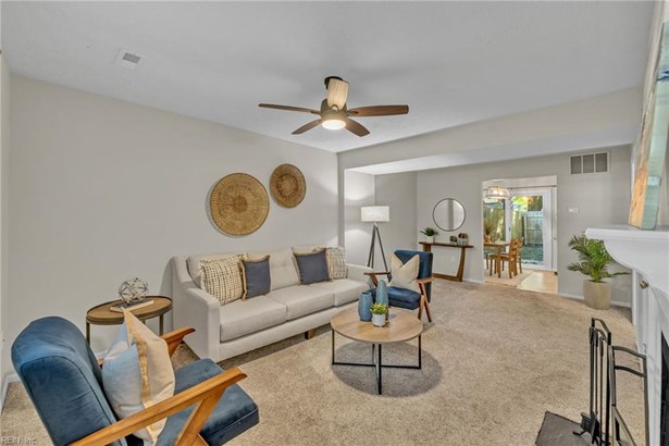 Nestled inside an 18-home cul-de-sac off of Old Denbigh Blvd. Large peninsula provides treed views outside your front windows. Privacy fenced yard natural foliage offers shaded outdoor enjoyment. Open floorplan. Warm glow of the fireplace will fill the great room and extend into the eat-in kitchen. Step outside to enjoy fresh air, a cookout, or a time of solitude. Journey upstairs to the 3 bedrooms. OVERSIZED PRIMARY BEDROOM. Notice the closet organizers. Updated bathrooms. Maximized closet space under the stairs. BRAND NEW ROOF. 2023: HVAC. 2018: Kitchen Sliding Door, Wood Fence and Front Windows. MINUTES AWAY, access from Old Denbigh Blvd, HARWOOD MILLS PARK AND FISHING AREA: nature trails, boat ramp, paddle boats, picnic areas & YORKTOWN McREYNOLDS ATHLETIC COMPLEX: community garden, lighted sports fields, extensive playground, and 1.8 multi-purpose path, bike lane, 31 public picnic shelters. Centrally located to restaurants, shopping, I-64, Ft Eustis, and Yorktown.
