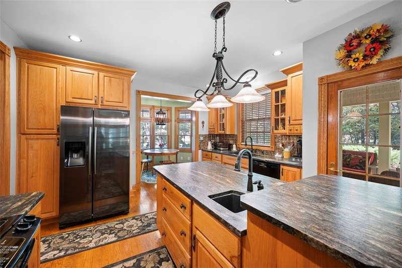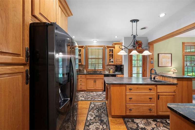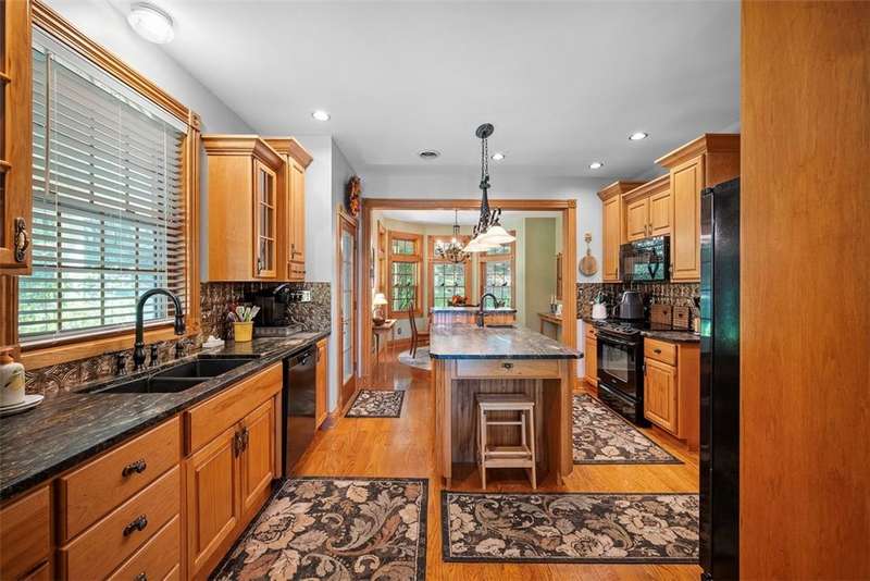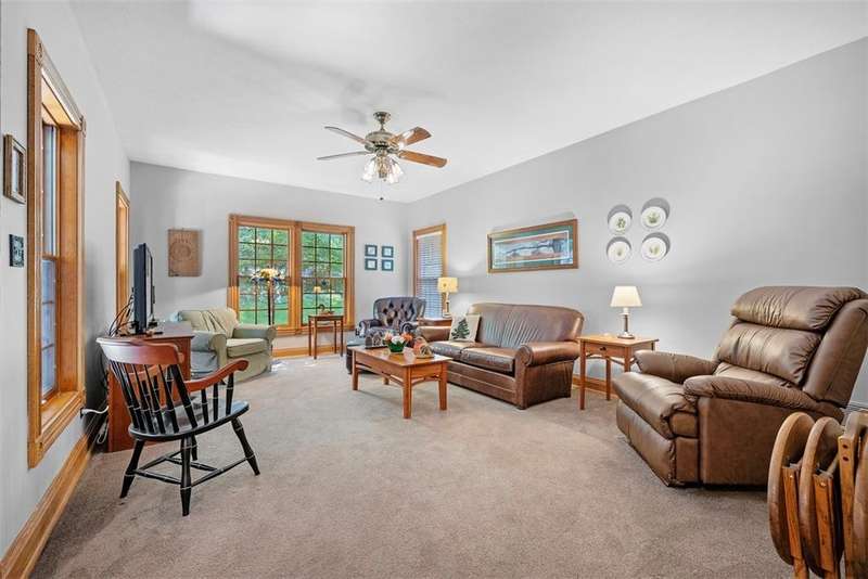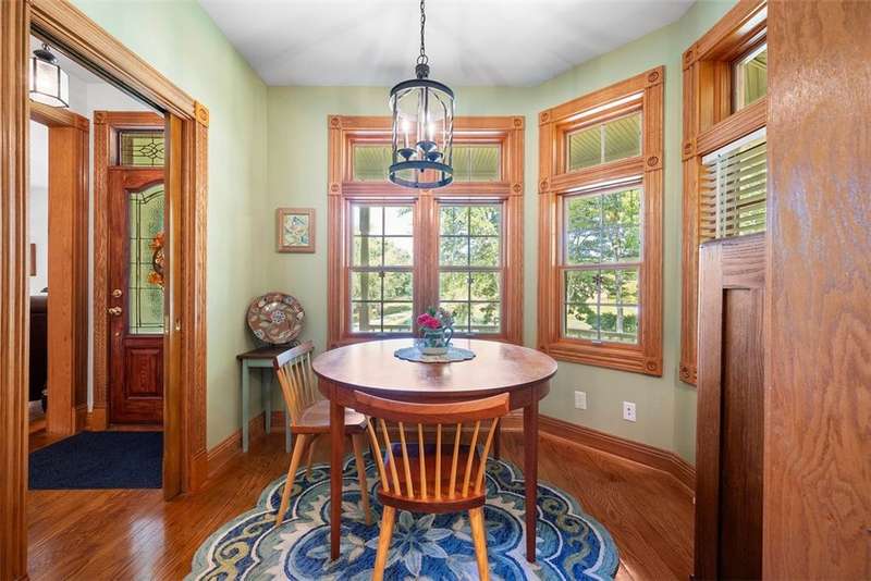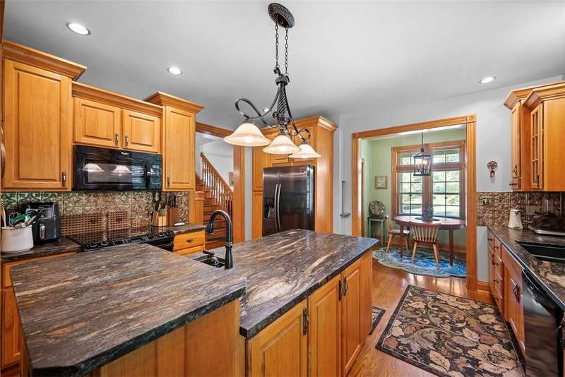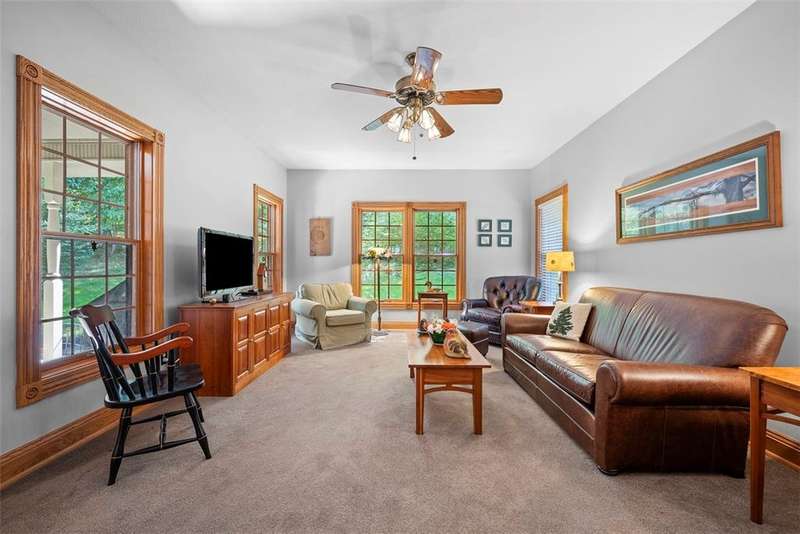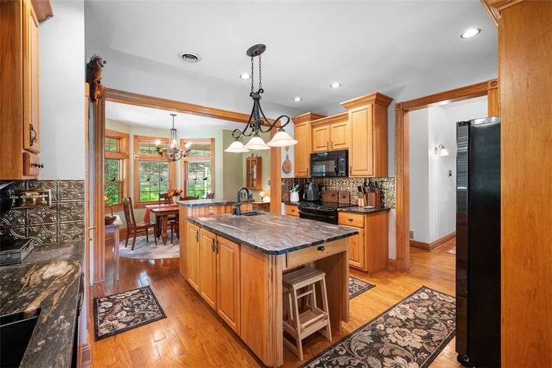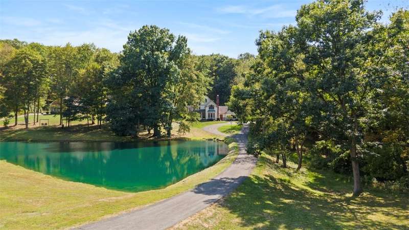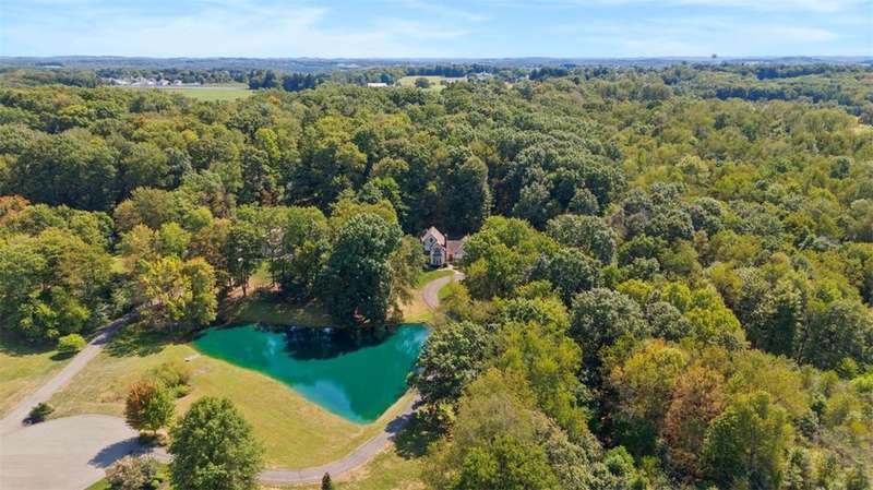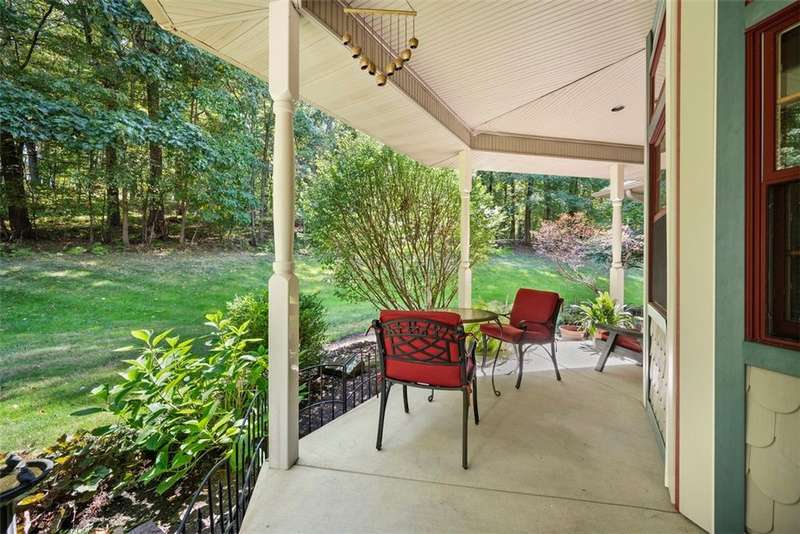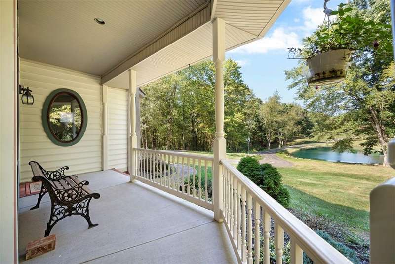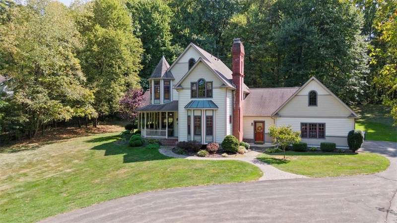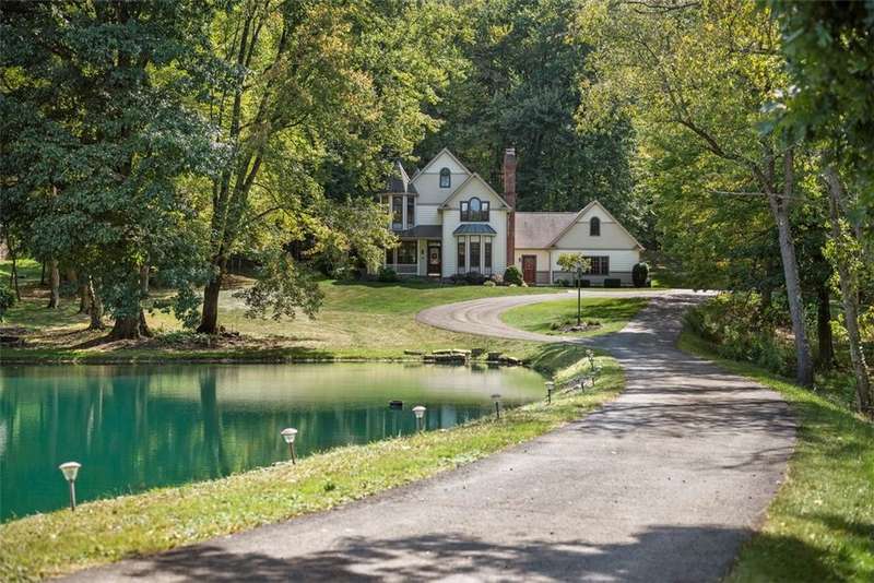 STUNNING custom-built Victorian retreat! Nestled on 3.6 private, wooded acres and overlooking a serene pond, this home combines timeless architecture with exquisite craftsmanship. A welcoming wraparound porch sets the stage for gracious living. Inside, you'll find a chef-inspired kitchen showcasing hickory cabinetry, leathered granite countertops & a spacious island w/storage. The kitchen is open to the uniquely designed dining area full of windows to enjoy nature. The front living room can serve as a flex space for an office & features a fireplace. A spacious family room sits at the rear of the home w/views of the beautiful setting. 1st floor laundry and full bath round out the main level. Upstairs, the owner's suite boasts a cozy fireplace, loft & spa-style en-suite bath. Two addt'l large bdrms & full bath reside on the 2nd level. The finished bsmt is an open canvas for your needs - workshop, game room, home gym! Located 20 min to Cranberry, 15 min to Butler Commons. WELCOME HOME!