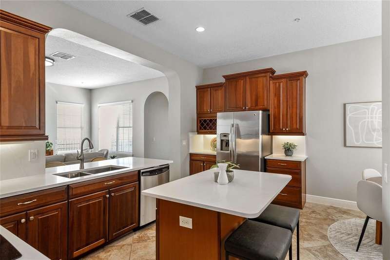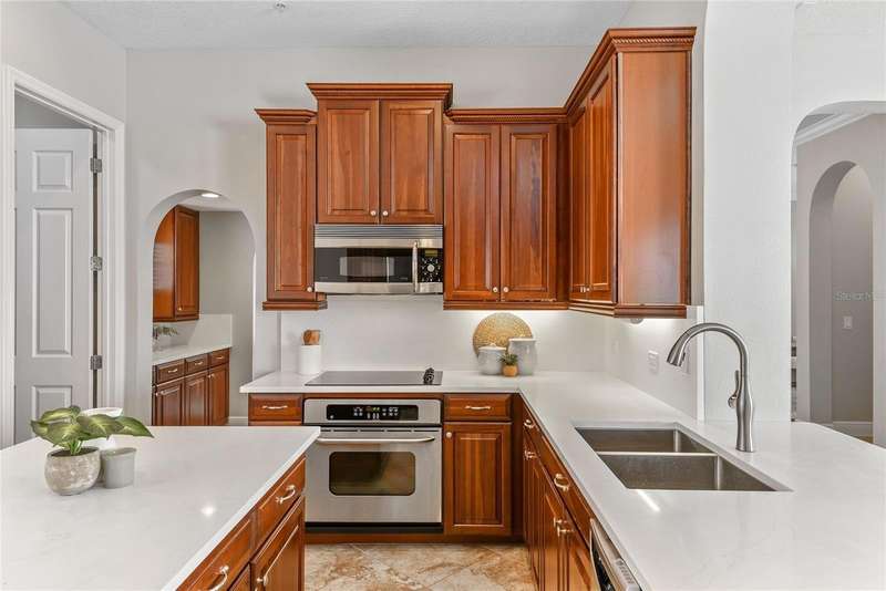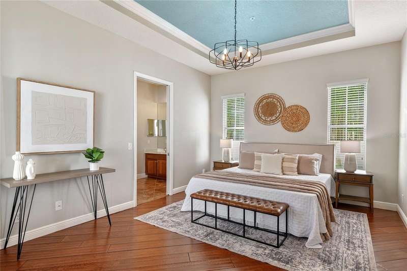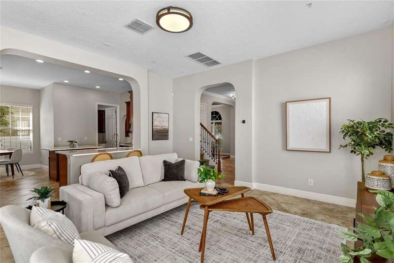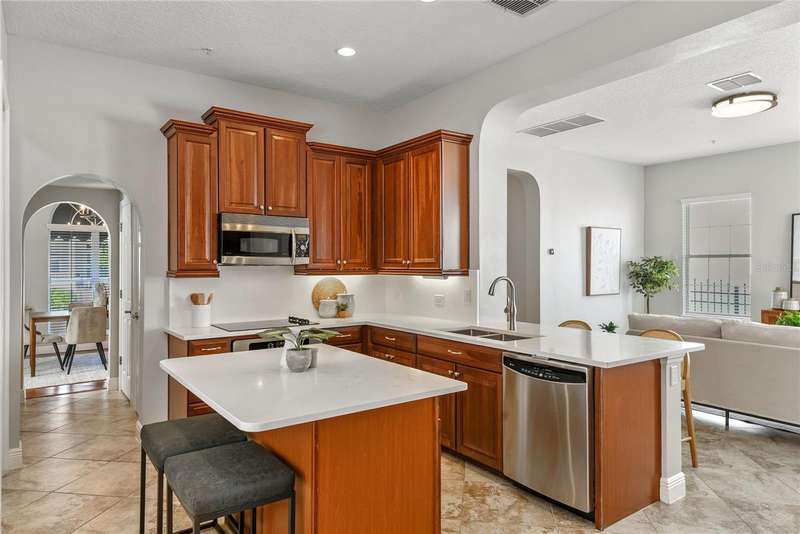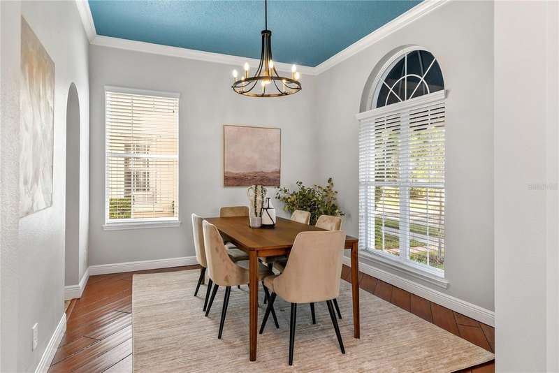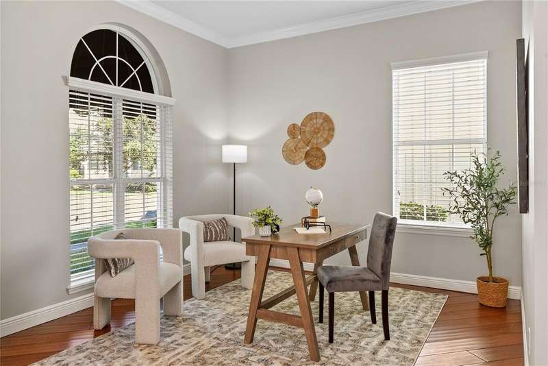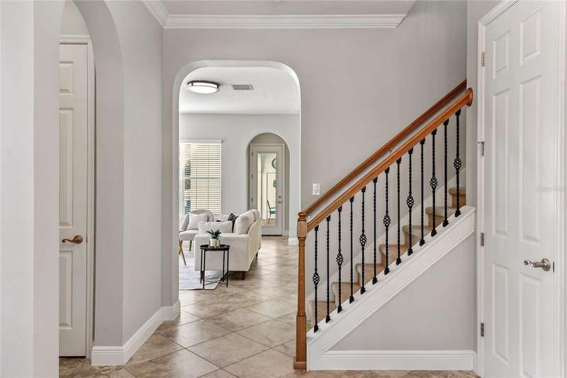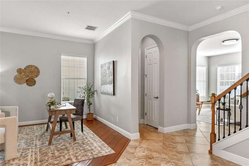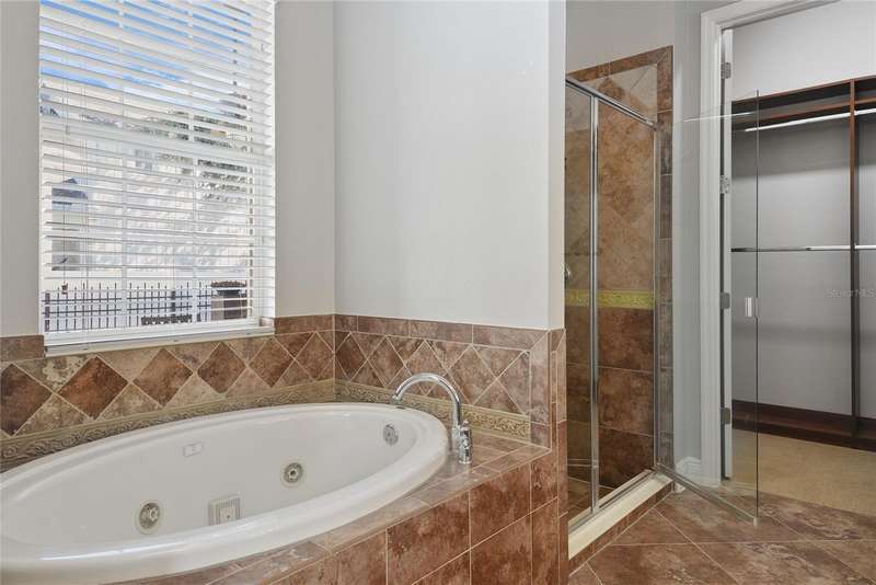 Prepare to be captivated by this stunning Mediterranean-style home in the heart of Baldwin Park—one of Orlando’s most desirable neighborhoods. This beautifully designed residence offers exceptional space, featuring a rare detached three-car garage with a full-size garage apartment—perfect for guests, in-laws, or generating rental income. Inside the main home, you’ll find 3 spacious bedrooms plus a large bonus room- providing plenty of room for everyone. Tons of natural light pours into every corner of the home. The formal dining and living rooms boast rich hardwood floors, with the living room offering an ideal space for a home office or sitting area. The open-concept family room and kitchen create a warm and inviting space, overlooking the freshly sodded backyard. The kitchen is equipped with solid wood cabinetry, quartz countertops with breakfast bar seating, stainless steel appliances, and a cozy eat-in nook. A convenient butler’s pantry between the kitchen and dining room makes entertaining a breeze. The first-floor primary suite offers both privacy and convenience, featuring hardwood floors, a luxurious en-suite bathroom with dual vanities, a walk-in shower, jetted tub, and a custom walk-in closet by Closets by Design. Upstairs, you’ll find two additional bedrooms both with custom built closets as well as a spacious bonus room also with a custom designed closet that could easily be converted into a fourth bedroom if desired. Inside laundry room with custom storage. Outdoor living is just as impressive, with a covered lanai with pavers, a fenced backyard for added privacy, and plenty of room to relax or entertain. The detached garage apartment has its own private entrance and offers full-size living quarters with kitchen, bath, walk-in closet and washer and dryer—a rare and valuable addition. The rear-entry 3-car garage has a private driveway and is already wired for an EV. Ample space for vehicles, storage, or even a workshop. This home is located just steps from the Cady Way Trail as well as a short walk to one of Baldwin Park’s pools and playgrounds. With 3 community pools, 2 fitness centers, plenty of parks and playgrounds and tons of shopping and dining- you really can’t beat the Baldwin Park lifestyle! Don’t miss your opportunity to own this exceptional Baldwin Park home that perfectly blends timeless Mediterranean charm with modern convenience. Welcome home!