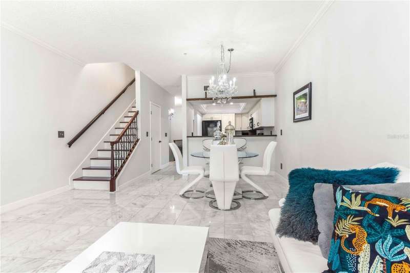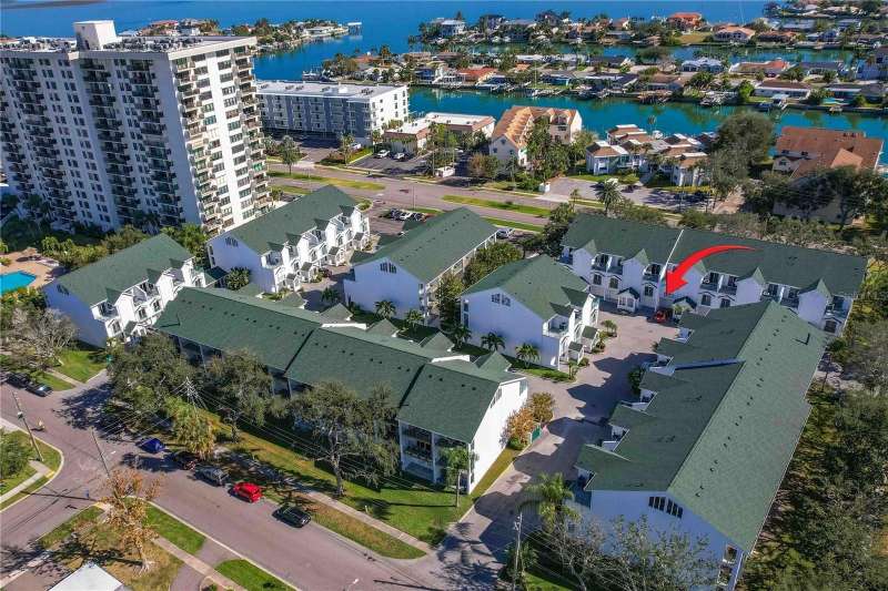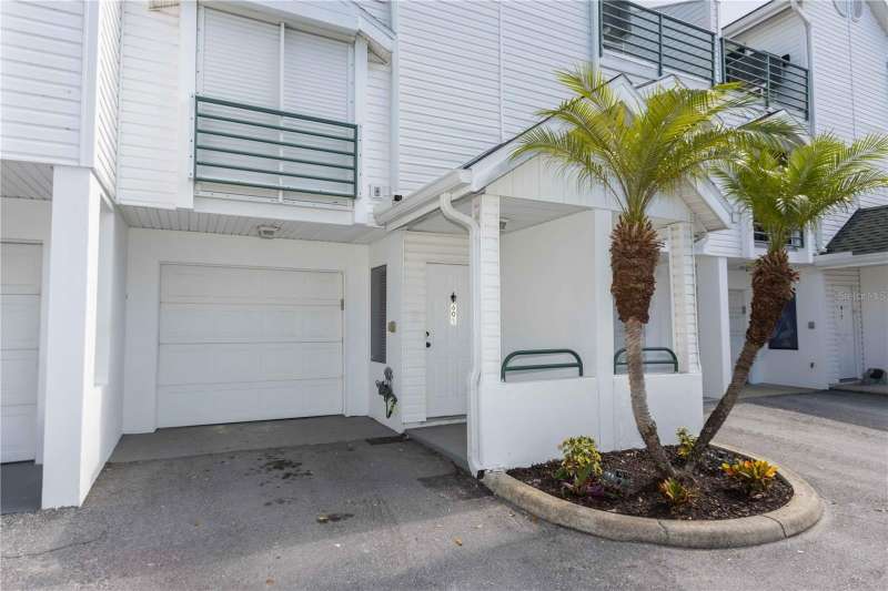 Welcome to your slice of paradise in Cutter Cove, a serene and sought-after townhome community just minutes from Clearwater Beach. This beautifully updated, three-level residence offers resort-style living with timeless coastal elegance. Spacious primary bedroom with two closets, a spa-style bath featuring a soaking tub, and a wooden spiral staircase leading to a versatile loft — perfect for an office, media room, or even a fourth bedroom. Huge balcony with sliding glass walls invites in the island breeze and expands your living space. A second upstairs bedroom also includes its own full bath and walk-in closet. Custom wood cabinetry, high-grade countertops, wood flooring, and premium appliances open into a bright dining/living area. Main-Level Bedroom / Office: Ideal for guests or workspace, with an adjacent full bath. Foyer with wood stairs, iron railings, crown molding, and glass door walls throughout for an airy, open feel. BRAND NEW TRANE AC system, electric hurricane shutters, king-size Rheem hot water heater, and upgraded carpet in the living area. Oversized tandem 2-car garage with built-in storage cabinets, plus additional closets. French doors with screen sliders open from the ground floor to a private patio which is perfect for relaxing on sunny days. Community amenities include a sparkling resort-style pool, Hot tub spa surrounded by tiki huts. Minutes to downtown Island Estates for shopping, restaurants, and more.