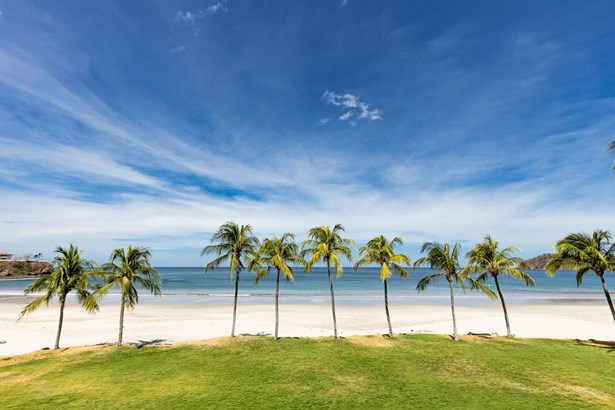 The Palms #33: Experience luxury living at Palms #33, an exquisite titled beachfront property in the heart of Flamingo, Guanacaste, Costa Rica. This stunning condo is part of The Palms, a prestigious development featuring 34 exclusive condos on pristine white sands.As you enter Palms #33, you'll be greeted by elegant travertine floors, high ceilings, and an incredible wide-open view of Flamingo Beach. Spanning 2,831 square feet, this luxurious condo offers 3 bedrooms and 3.5 bathrooms, ensuring ample space for comfort and relaxation.The kitchen is a chef's dream, featuring spacious design, Sub-Zero and Viking appliances, green granite countertops, and ample space to entertain friends and family. Adjacent to the dining area is a beautiful bar with onyx stone that lights up. This area is surrounded by an atrium with a lush jungle and garden on one side and a breathtaking ocean view on the other. You and your guests are going to be in awe of this gorgeous setting!Palms #33 comes fully-furnished with exquisite high-end furniture. It is turn-key and ready for you! This condo would make a great permanent residence or it could continue as a vacation rental. There are two large oceanfront master suites that overlook the Catalina Islands. They boast king beds that face the ocean with roll-up TVs at the end of the beds for added luxury. Each has a massive spa-like ensuite bathroom covered in granite stone with make up counters, two sinks, showers, and oversized bathtubs. In addition, there is a third guest bedroom that is equally beautiful with a king bed and ensuite bathroom with a shower.All along the front of the condo, including off the 2 master suites and the living area, are patio doors that completely open up, allowing you to enjoy the seamless transition between indoor and outdoor living. The patio offers a perfect space for gatherings and lounging, surrounded by gorgeous palm trees and the Pacific ocean. Being a ground floor corner unit, Palms #33 offers a spacious outdoor area and easy access to the beach. Across a soft grassy front yard, you are steps away from the pristine white sand and warm tropical waters!The Palms is a gated community offering 24-hour security with parking, a large community BBQ area, a gym with an ocean view, 2 swimming pools, luxury lounge chairs, onsite massage therapists, and use of standup paddle boards, sea kayaks, and snorkeling equipment. The infinity beachfront swimming pool and an adult pool share a bar, providing the perfect setting for enjoying a cocktail while watching the beautiful sunset over the Pacific Ocean. The community is within walking distance of local restaurants and the new Flamingo Marina. It is minutes away from grocery, medical, a casino, an equestrian center, schools, and many other restaurants.Playa Flamingo is known as the Beverly Hills of Costa Rica, offering luxurious homes and condos on the beach and in the nearby hills. The sand is soft and the bay is perfect for playing in the waves. With less than 5% of Costa Rica's coastline titled, Palms #33 presents a rare opportunity to own a titled white sand beachfront property. Don't miss the chance to make Palms #33 your luxurious beachfront retreat! Reach out to us today to secure a private viewing.