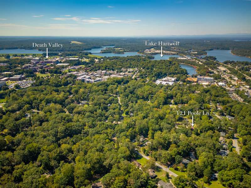 Downtown Clemson real estate is special, and this is your chance to experience it! The very limited traffic and noise make Poole Lane one of the best streets in Clemson to reside, and you're about a 10-minute walk to campus, shopping, dining, and more. As you approach, you'll be greeted by lush landscaping and steps up to a cozy and inviting screened porch with an included mounted TV. The main floor presents many options for both entertaining and everyday living. Relax and gather in either the living room or the keeping room, both adorned with an authentic wood-burning fireplace and wood stove, respectively. The updated kitchen features granite countertops, newer cabinets, an island with bar seating, and a formal dining area perfect for larger gatherings. The main floor also includes three bedrooms, 1.5 bathrooms, and an office/den. Downstairs provides great bonus space, including a rustic recreation area, a 4th bedroom, a full bath, and a laundry room (the lower level is heated but not cooled--being below grade on 2 sides keeps it nice and cool year round). The current owners have even drawn up plans for an attached two-car garage with a workshop/storage area, and living space above, including 2 bedrooms, 2 full baths, a living room, and a second kitchen. This quaint niche street allows for easy walking, biking, and golf cart commuting to Clemson University and is located less than two miles from access to Lake Hartwell.