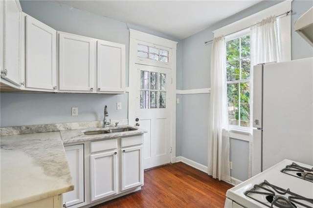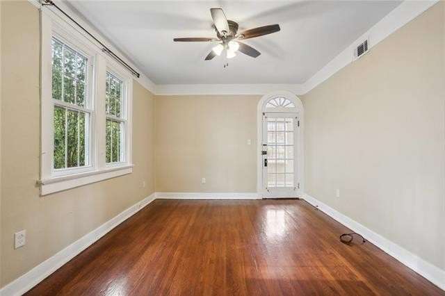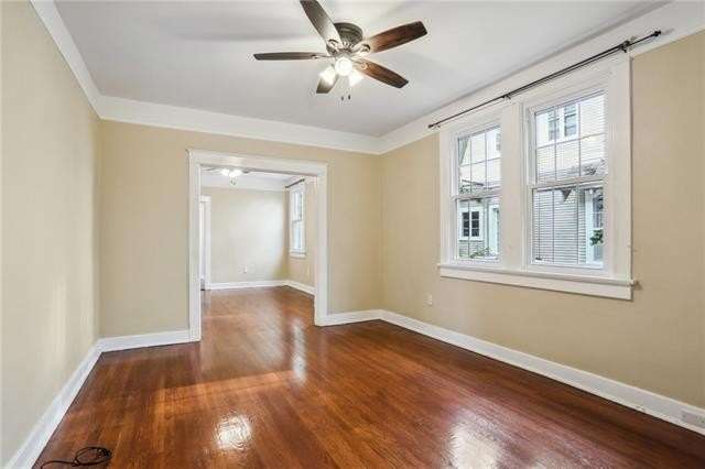 This charming Fontainebleau first-floor unit in an owner-occupied duplex has been impeccably maintained and updated throughout the years. The apartment has 2 fully independent bedrooms and 2 full bathrooms. The primary bedroom has two separate closets and an en suite bathroom with washer and dryer. The home has more than ample living space with a separate fully conditioned sunroom, living room, dining room, kitchen, AND former butler's pantry which services wonderfully as a breakfast nook or home office and boasts original china cabinets, providing both charm and practical storage. Your energy bills will stay low with central HVAC, new windows installed in 2022, tankless water heater, and insulation under the beautifully refinished original hardwood floors. The kitchen boasts quartz countertops, a pantry, and gas range and opens out onto the large brand-new shared covered deck and back patio. Exterior security camera monitoring, neighborhood security, and yard maintenance included. Well-behaved cats and dogs are welcome with a refundable $250 deposit. Sorry, property is NON-SMOKING inside and outside due to on-site landlords' family health issue. X Flood Zone.