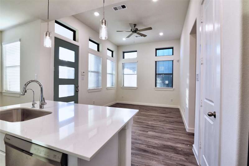 Charming cottage in the new subdivision of Indigo. Rebate of 1/2 of first month’s payment at signing of lease. Conveniently located, near Grand Parkway and Westpark Tollway. One story beauty with 2 BR/2BA. Front living area w/ high ceiling which overlooks the smartly designed kitchen w/quartz counters, a 'belly up to the bar' feature w/additional seating, a generous pantry and SS appliances, including a refrigerator. Dining area sits off the kitchen area. Both BR sit at rear of house, with primary BR containing a walk-in closet and an en-suite bath. Washer and dryer included with the lease for your convenience. Enjoy sitting on your covered front porch and enjoying a morning beverage while you observe the sunrise! And, as a bonus, all of your yard maintenance is covered with your lease. The Indigo Cottages include Indigo Commons, Indigo Farm and Orchard, a dog park, and multiple other parks, including a lake w/kayak launch. Come on HOME and enjoy this thriving community of Indigo!