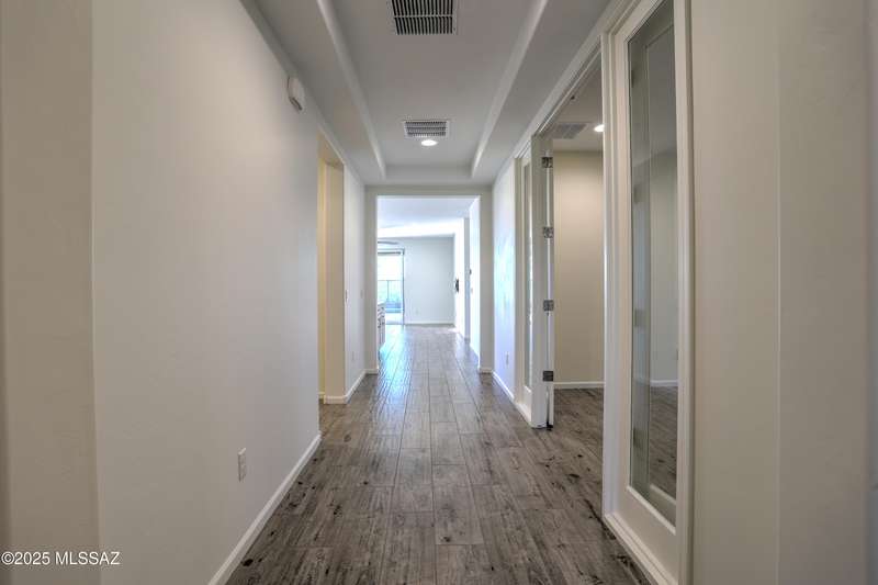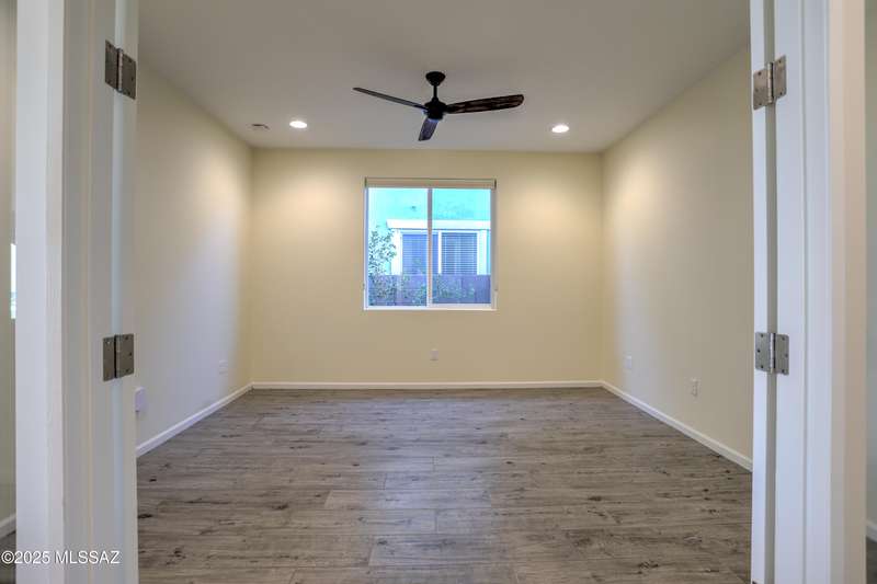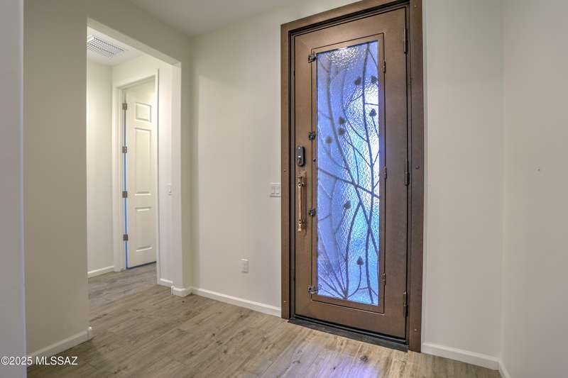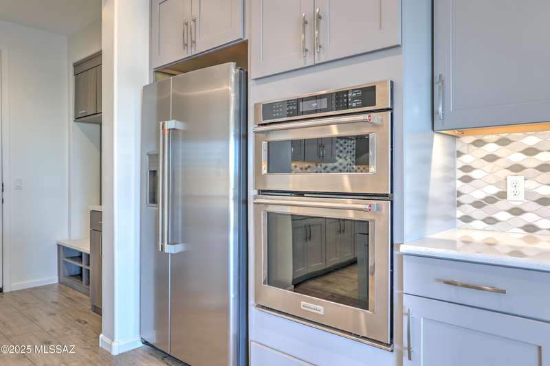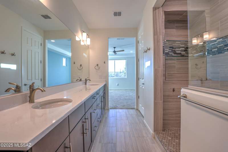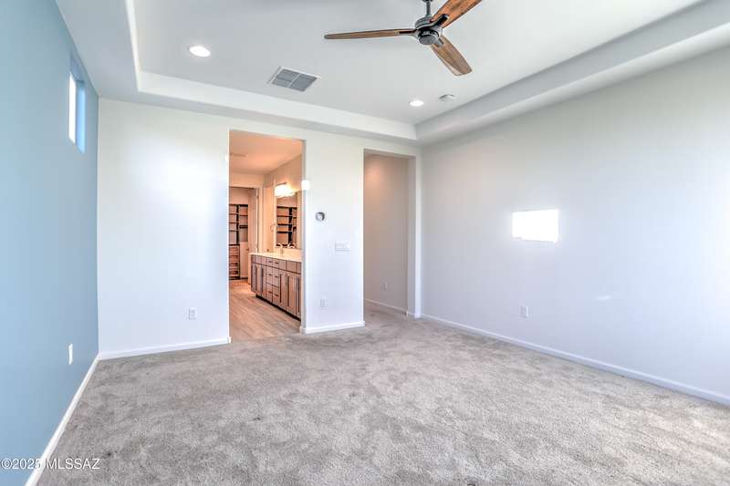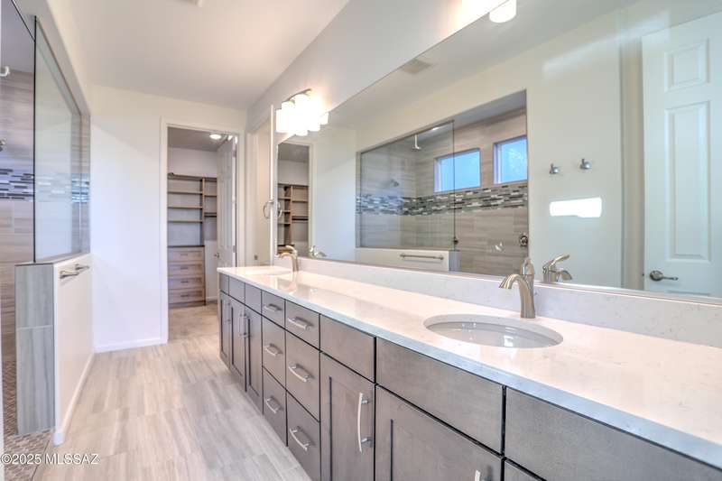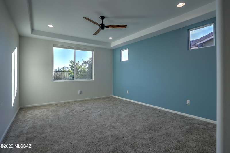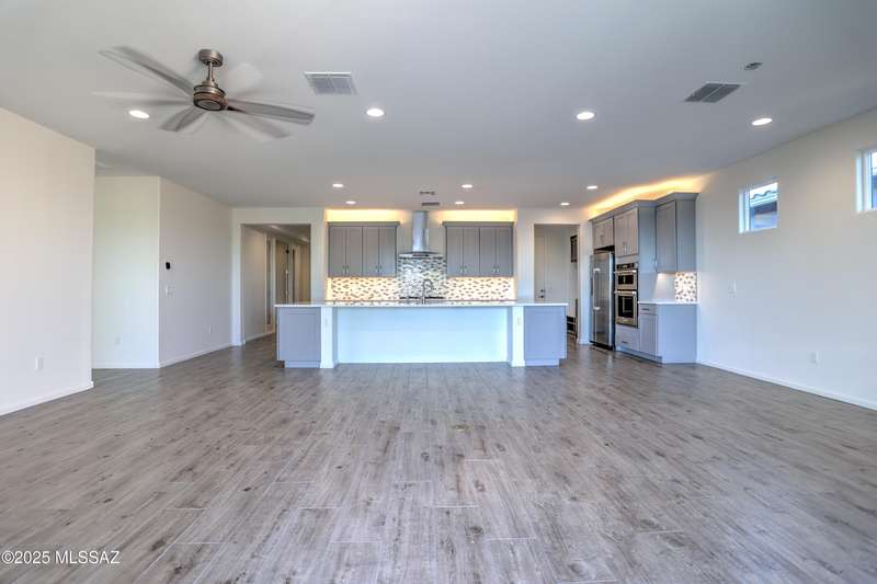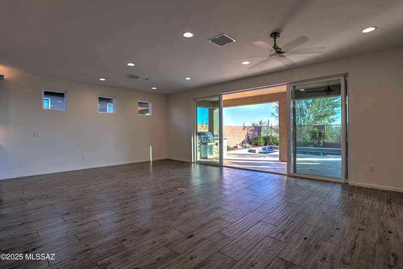Presenting serene desert living in this exceptional home in the gated community of Blue Agave in Dove Mountain. An inviting open-concept layout showcases an oversized island flowing seamlessly into the great room, where 16-ft sliding glass doors blur the line between indoor and outdoor living. The primary suite offers a spa-like bath with an upgraded walk-in shower and a generous custom closet. A split floor plan provides guest privacy, while a den with glass doors creates the ideal home office or flex space. Step outside to your private backyard backing to a natural preserve, featuring a covered patio, sparkling pool and spa, built-in BBQ, citrus trees, and a winding staircase leading to an elevated sun deck with panoramic mountain and desert views.
