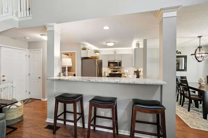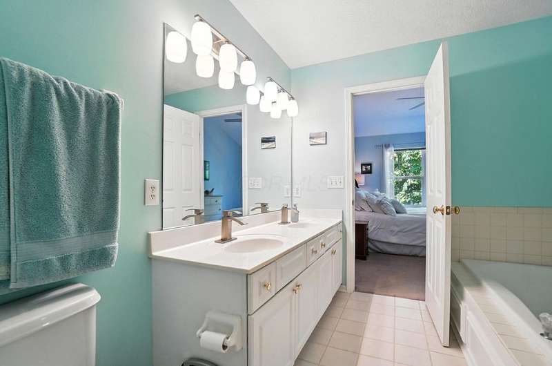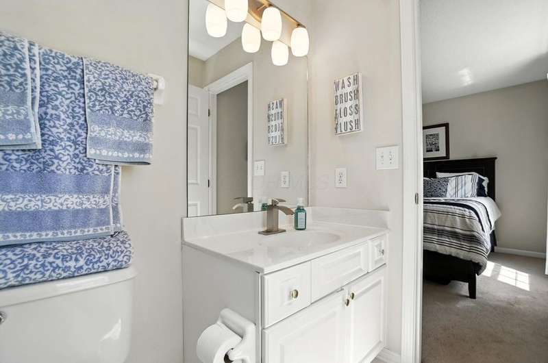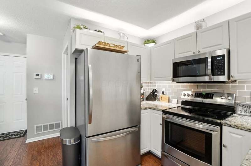 Don't miss this beautiful condo in a prime Gahanna location, nestled at the end of a quiet cul-de-sac. Located in the highly sought after Gahanna schools, this move-in ready home features vaulted ceilings and a cozy gas fireplace in the living area. The kitchen offers granite countertops, updated flooring and an eat-in space perfect for family gatherings. Step from the dining room onto a covered porch with tranquil wooded views. Spacious bedrooms and generous closets provide everyday comfort, while the finished lower level offers a family room, rec area and walkout patio perfect for entertaining, hobbies or a potential third bedroom. Enjoy community amenities including a clubhouse and pool, all in a serene wooded setting, while just minutes from parks, shopping and dining.