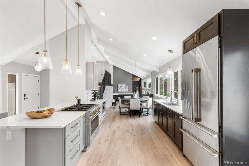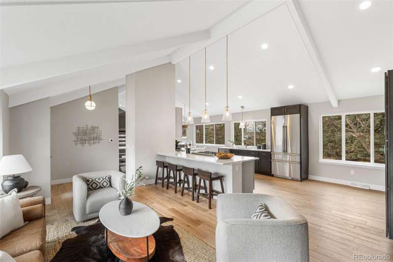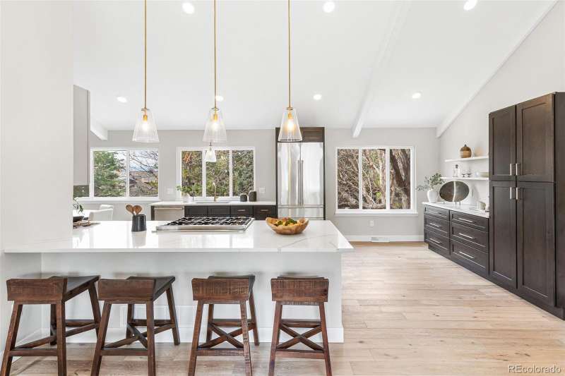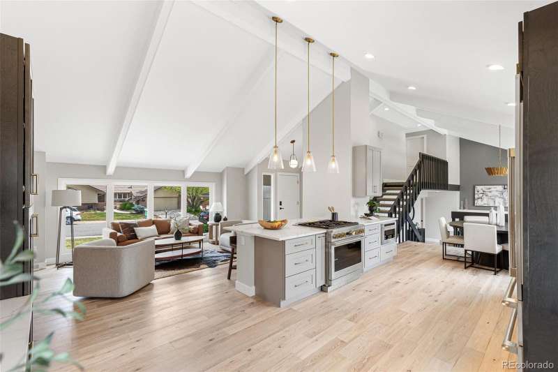 Discover and compare this beautifully remodeled contemporary home in Heritage Greens, perfectly located on a peaceful cul-de-sac just steps from Linksview Park and the South Suburban Golf Course. This home blends modern design with everyday comfort, featuring an urban-inspired interior and a stunning new kitchen outfitted with GE Monogram appliances, Highland Shaker cabinetry, and custom tilework. Expansive ceilings and large Amerimax vinyl windows (installed in 2023) flood the space with natural light, highlighting new wood flooring and plush custom carpeting throughout. The newly finished, permitted walkout basement offers a family room and 3/4 bathperfect for entertaining guests or enjoying quiet evenings at home. Sophisticated touches, including Misterio, Lux Aurum, and Pental polished quartz countertops, enhance the kitchen and bathrooms, complemented by Kohler fixtures and custom lighting. Recent upgrades include fresh exterior paint, new 4-inch gutters (2024), a refinished back deck, and an epoxied garage floor. The upgraded electrical panel and improved attic insulation add peace of mind and energy efficiency. Experience refined modern living in Heritage Greenswhere style, comfort, and location come together seamlessly.