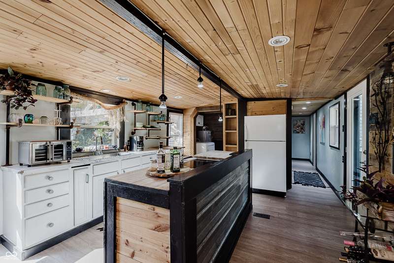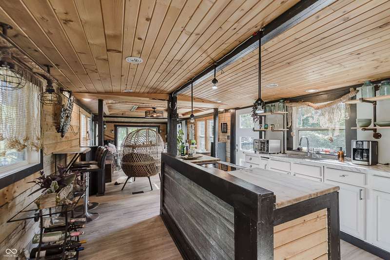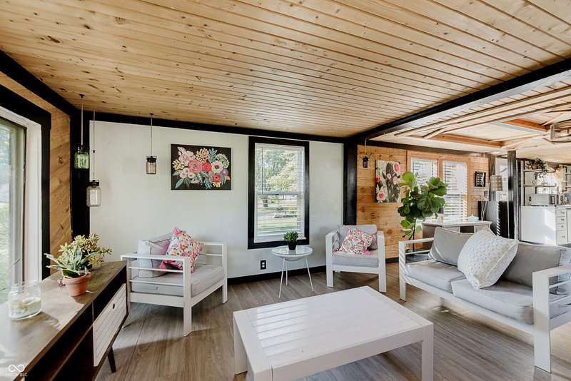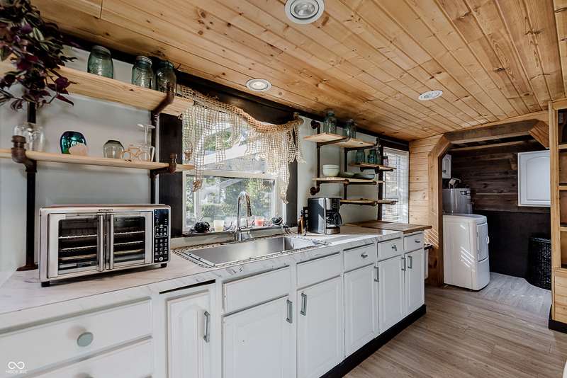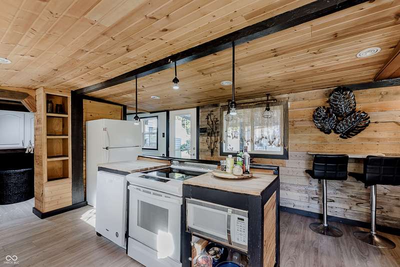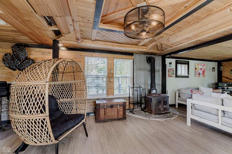 This charming 2 bedroom home offers a spacious open concept kitchen/living room with an inviting wood burning stove to enhance the cozy atmosphere. The woodwork throughout offers warmth and character. Kitchen offers a large island and newer appliances, including a new dishwasher. New waterproof vinyl plank flooring throughout. The large primary bedroom comes complete with a walk in closet. Private fenced in backyard is a gardeners paradise with a variety of fruit and ornamental trees, grasses, flowers and berry bushes. Home has 3 lots! Relax on the covered back porch and enjoy this magical home. New gutters, furnace, central air, water heater, updated electrical and more. Extra large driveway! All appliances included, plus a washer & dryer, 2 sheds, workbench, and the chicken coop stay! Walk to the park and shopping. Pendleton schools
