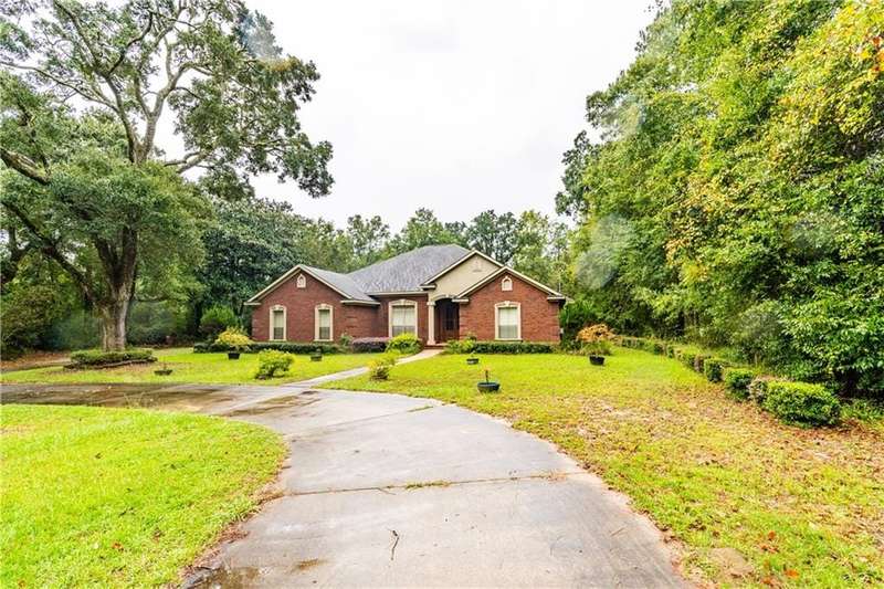 Don't miss this spectacular WATERFRONT property minutes away from I-10 I-65 Downtown shopping and more! This 1 story home sits on almost 1.5 acres offers 100 plus feet of waterfront waiting to be developed into your own private oasis... Conveniently located, split floor plan with nice size den, main bedroom overlooking the property, offers high ceilings, double vanity, separate shower and tub. Circle driveway leading you straight to the entrance of this charming home. Don't miss the opportunity to own a home right by the water at such a great price! This is a fantastic home for someone who is really wanting to enjoy Mobile to its fullest potential. Call today and find your dreams a home...Buyer responsible for verifying all measurements and relevant details.
