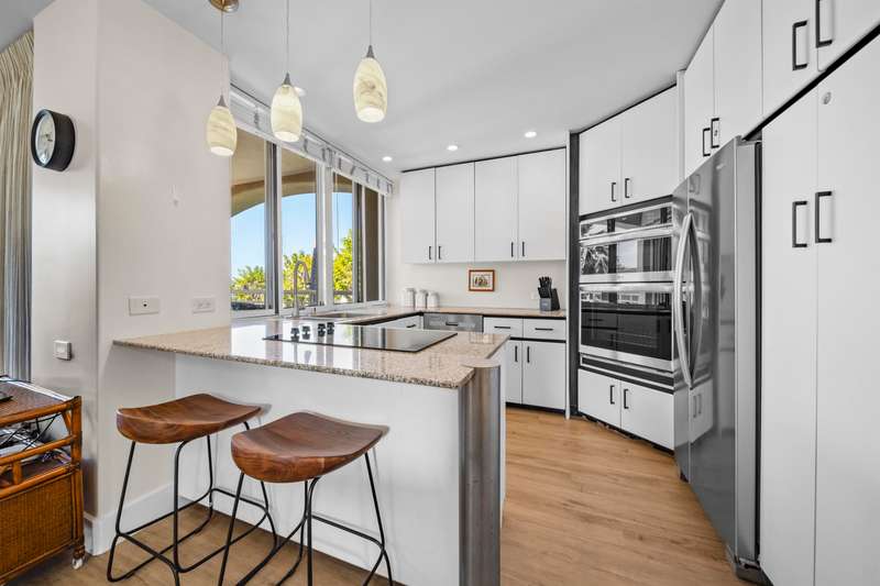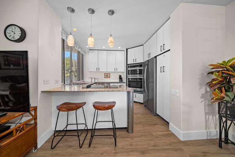 Owners and Visitors to the Palms of Wailea understand why this Resort is a favorite... solid concrete construction, spacious interiors, well managed low density Resort perched on a Bluff within a short walk to the famed Wailea Resort shoreline and upscale Shops and Restaurants. Palms 406 is all of the above and also boast new flooring, fresh coat of paint, new furnishings, fixtures and appliances. Combine that with added A/C in the Great Room, the privacy on the second floor with a lanai that is both open and covered where one can enjoy Preferred Resort Views, Sunsets and Night Skies with a bonus partial Ocean View. With all these Attributes in place, the Buyer of Palms at Wailea 406 will find great value at this price... Privacy, Preferred Views and desirable Location in this self managed popular Vacation Rental property.