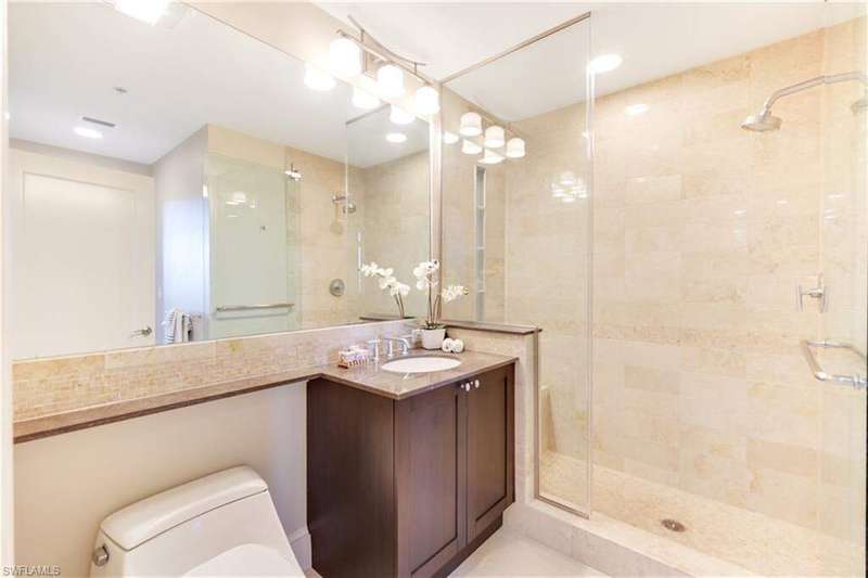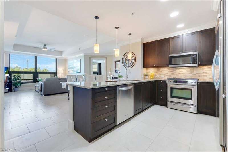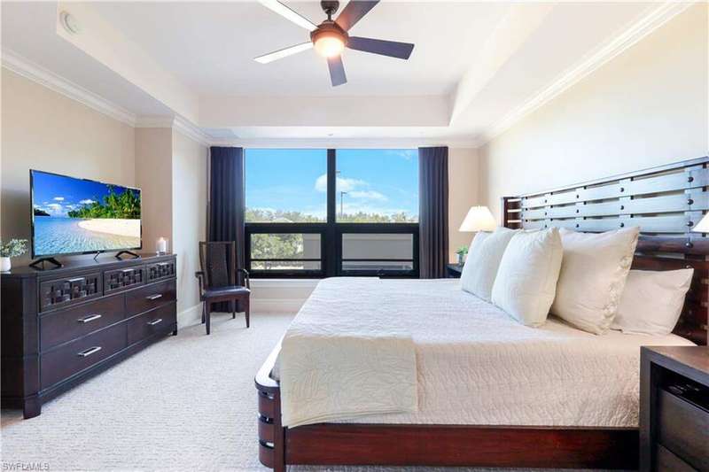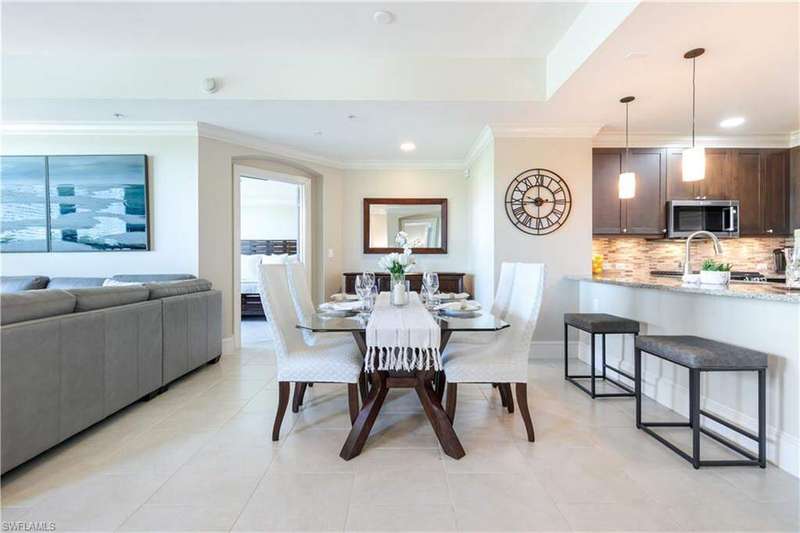 Welcome to Mercato - where coastal sophistication meets effortless living. This beautifully furnished 2-bedroom, 2-bath residence offers a perfect blend of comfort and style in one of Naples' most vibrant communities. Designed for modern living, the open-concept floor plan features an elegant kitchen with granite countertops, stainless steel appliances, a gas range, and tiled backsplash-ideal for both casual meals and entertaining. The primary suite offers a spacious built-in closet and a spa-inspired bathroom with a soaking tub and separate shower, while the guest suite provides comfort and privacy for visitors with a separate bathroom and a walk-in closet. A private patio offers the perfect setting for morning coffee or sunset cocktails. Additional highlights include two assigned covered parking spaces, a climate-controlled storage unit, new A/C, and a new water heater. The laundry area is thoughtfully designed with a stackable washer/dryer and built-in cabinetry. Residents enjoy an exceptional amenity package with a 52-foot rooftop resort-style pool and spa, outdoor grills, fitness center, fire pit, dog park, and a clubhouse with catering kitchen-all secured by 24/7 gated and video-monitored entry. Just steps away, discover The Ritz-Carlton Beach Resort, Whole Foods, fine dining, boutique shopping, yoga and cycling studios, and vibrant nightlife-all within minutes of Downtown Naples and the iconic Naples Pier. Experience the best of Naples living-modern comfort, walkable convenience, and resort-style amenities at Mercato.