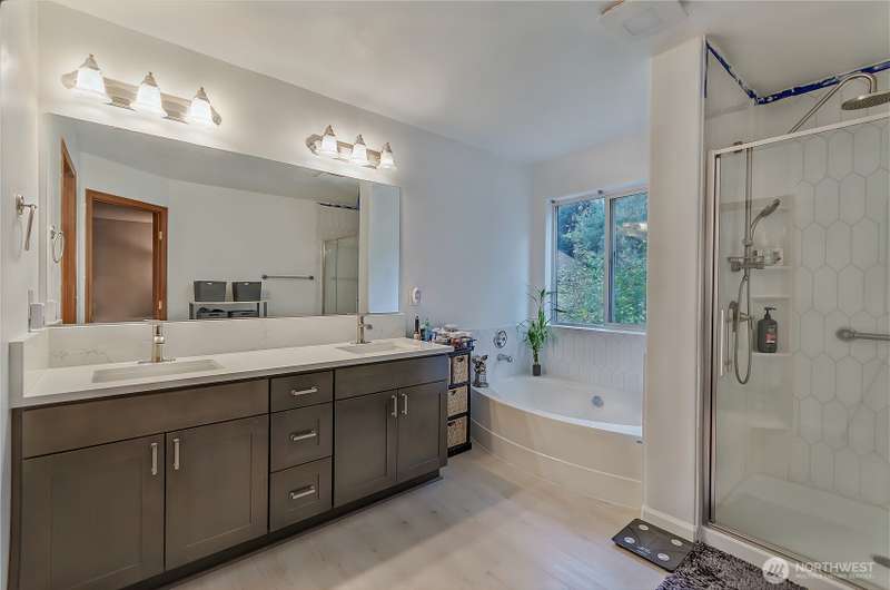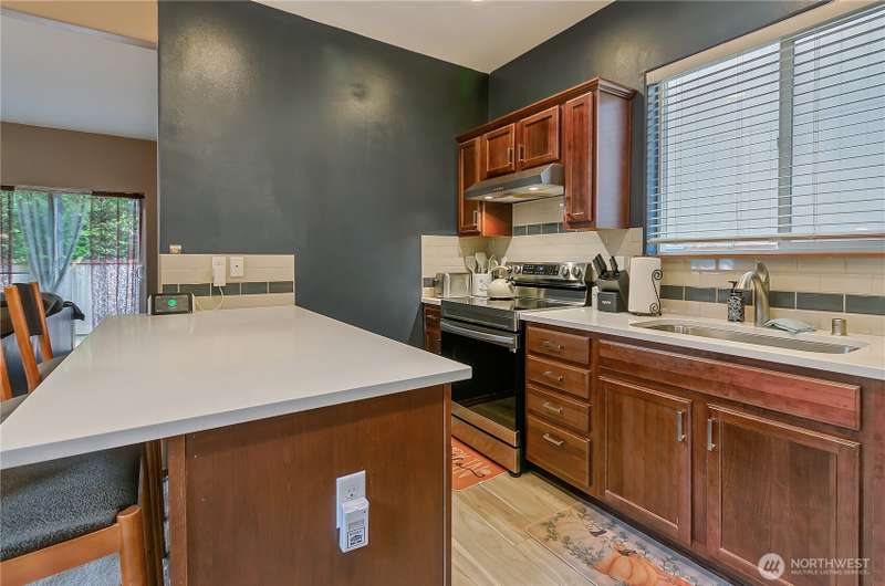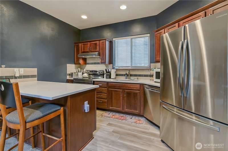 Lovely 3 Bedroom home in South Hill neighborhood features recent kitchen and full bath remodels. Kitchen includes stainless appliances, quartz countertops and vinyl plank flooring. Upstairs find a spacious loft flanked by two bedrooms and the primary suite. The bathrooms are so beautiful with new counters, hardware, flooring and glass shower doors. Washer and dryer included. Must see! Neighborhood includes park, ball court and play toys.