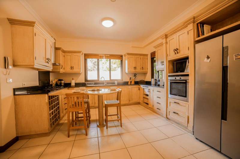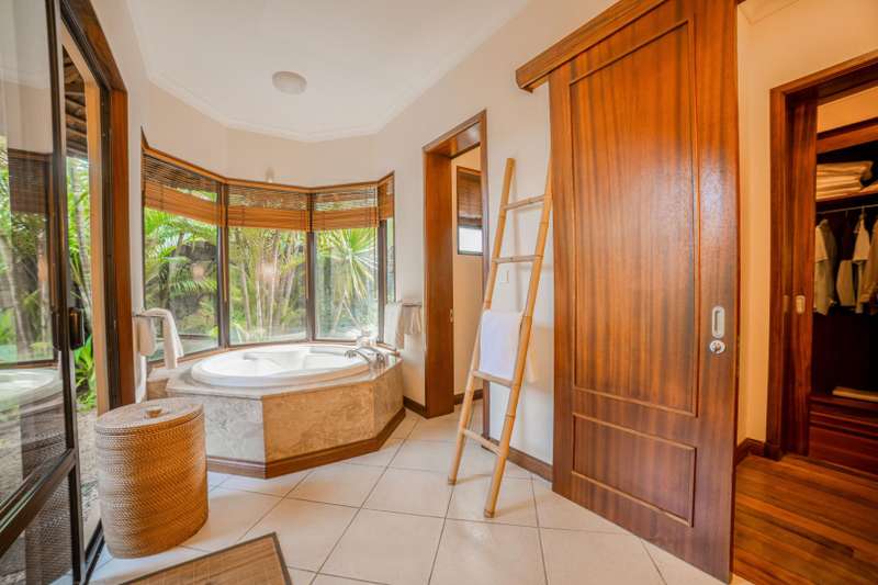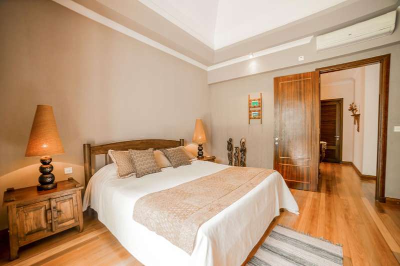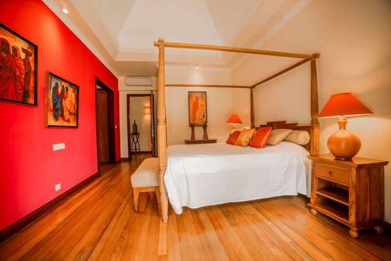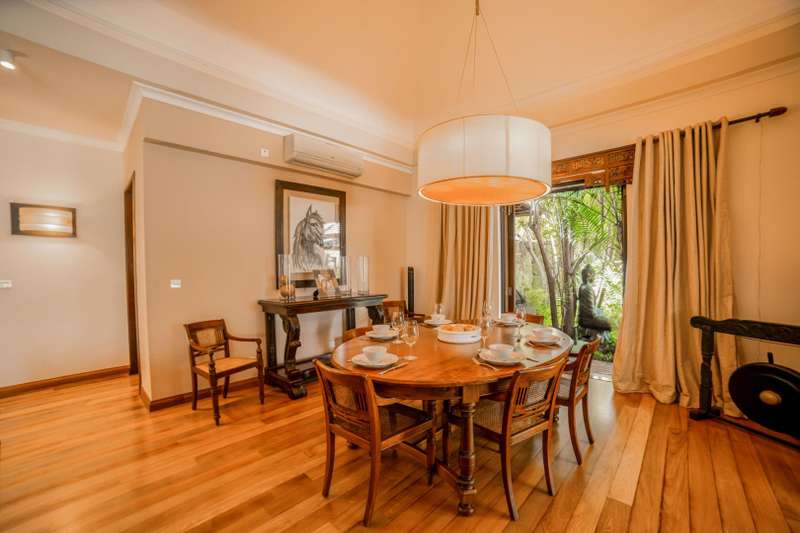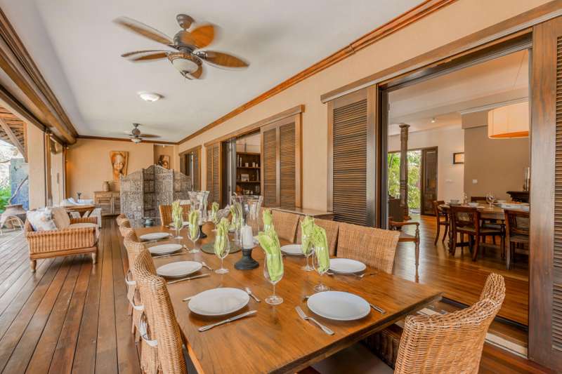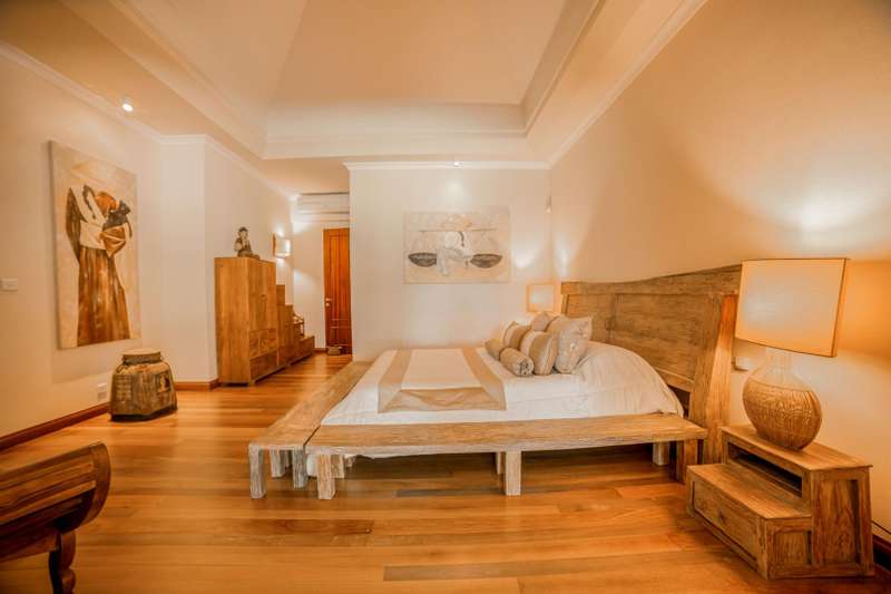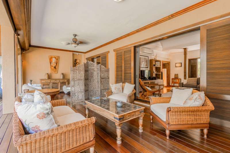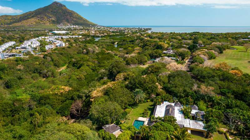 Hidden beneath a lush tree canopy near the Tamarin River, this elegant 5 bedroom villa offers timeless charm in one of Mauritius’ most desirable coastal enclaves. Combining natural textures with a sophisticated, tropical aesthetic, the home stretches across 378 m² of interior space and sits on over 3,200 m² of fully owned land in a peaceful, gated residential estate. The living and dining areas flow seamlessly into a wide veranda that overlooks a serene private pool, bordered by manicured lawns and mature palms. High timber ceilings and rich wood finishes lend a warmth to the home’s character, while modern comforts such as air conditioning in all rooms, a fully equipped kitchen and laundry area ensure effortless living. Five spacious bedrooms, including a master suite with garden views, are paired with generous storage and multiple indoor-outdoor living zones. The villa also includes two garages, five secure parking spots and a golf cart bay, ideal for navigating the nearby fairways. Perfectly suited for international buyers, this luxury property in Tamarin grants eligibility for permanent residency upon purchase. Whether you're seeking a full-time residence or a high-end investment in Mauritius, this property offers both sanctuary and prestige. Contact DIANE WATKINS, Property Consult for a private viewing!