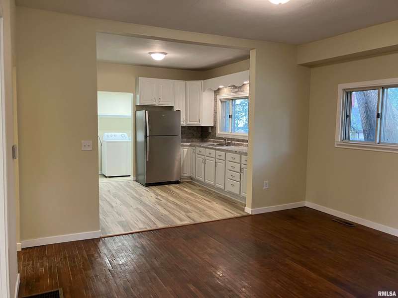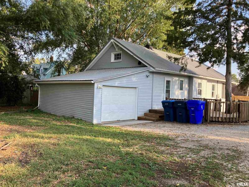 Charming 2-3 BR one-story home with attached 1.5 car garage, full painted basement, and walk-up attic for extra storage. Features an open floor plan with original hardwood floors in select areas, plus many recent updates throughout including GFA 2 yrs, metal roof 2yrs, freshly painted interior, new flooring, some new plumbing, new closets w/doors, lighting, privacy fence and re-stained deck . The versatile office/den has a closet and could easily serve as a small 3rd BR or nursery. This home also features unique alcove area with storage seating in BR. Beautiful eat-in kitchen with plenty of cabinetry. New appliances stay but unwarranted. Great deck area enclosed front porch for outdoor enjoyment.