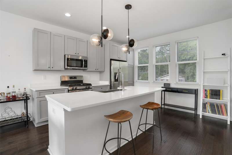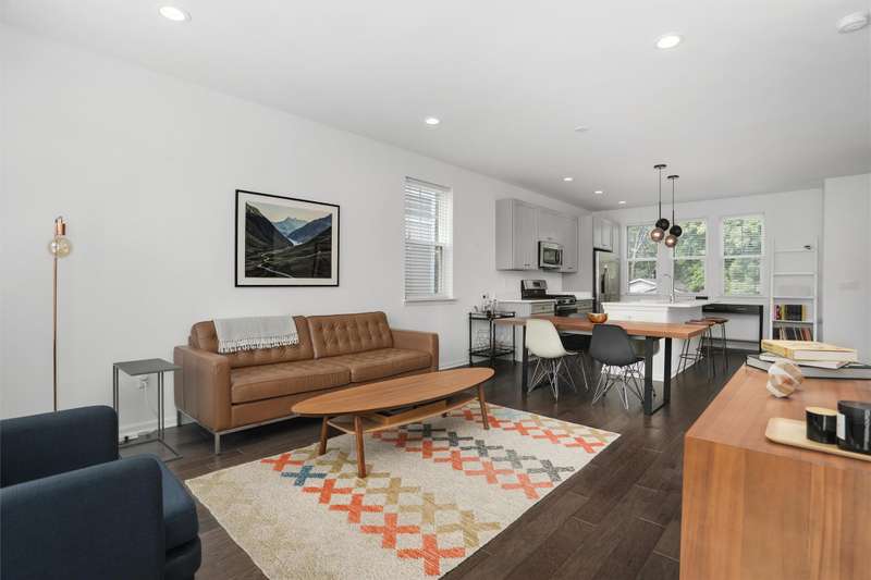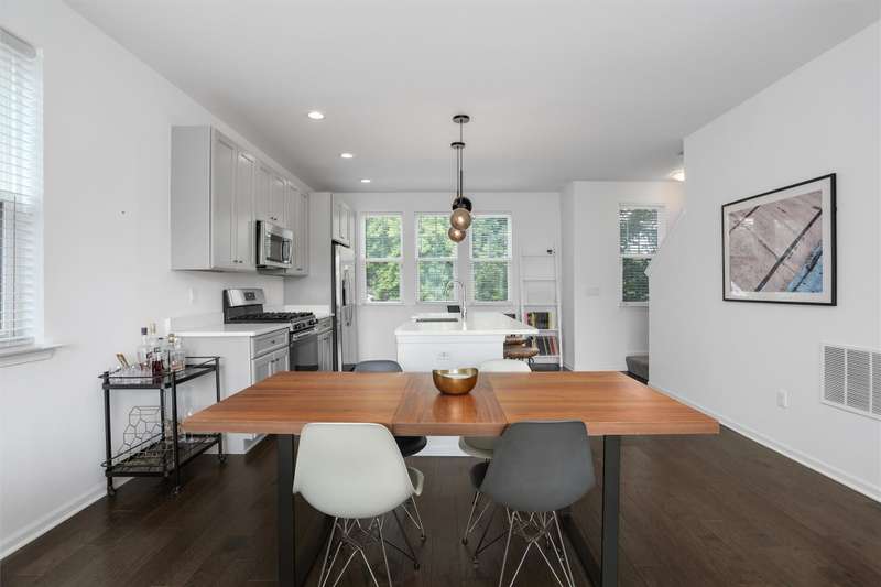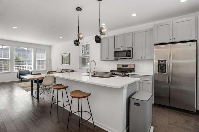 Welcome to 1500+ square feet of modern comfort and convenience in this exceptional end-unit townhome located in the sought-after Parkdale Townes community. Better than new, this home offers a thoughtful floorplan and upscale finishes throughout. Step onto the inviting covered porch and into a spacious foyer with coat closet. The contiguous versatile flex space functions beautifully as a mudroom, office, or creative studio. Adjacent there is a two-car attached garage with drywalled interior, epoxy coated floor and ample storage - a practical and polished space for both parking and projects. Upstairs, you'll find a guest powder room along with a light-filled open-concept living and dining area—perfect for entertaining—seamlessly connected to a private balcony ideal for outdoor lounging. The kitchen impresses with quartz counters, wood flooring and stainless-steel appliances. The top floor features three bedrooms, two full baths, and a dedicated laundry area. Enjoy the maintenance free ease of townhome living just steps from Garbutt Park and minutes from the vibrant dining, shopping, and entertainment scene of downtown Ferndale. With quick access to area expressways, your commute is a breeze. Modern. Move-in ready. Perfectly located. Don’t miss the opportunity to make this stunning townhome yours!
