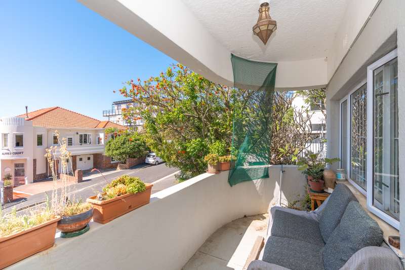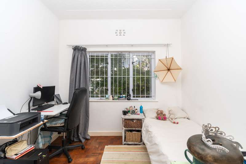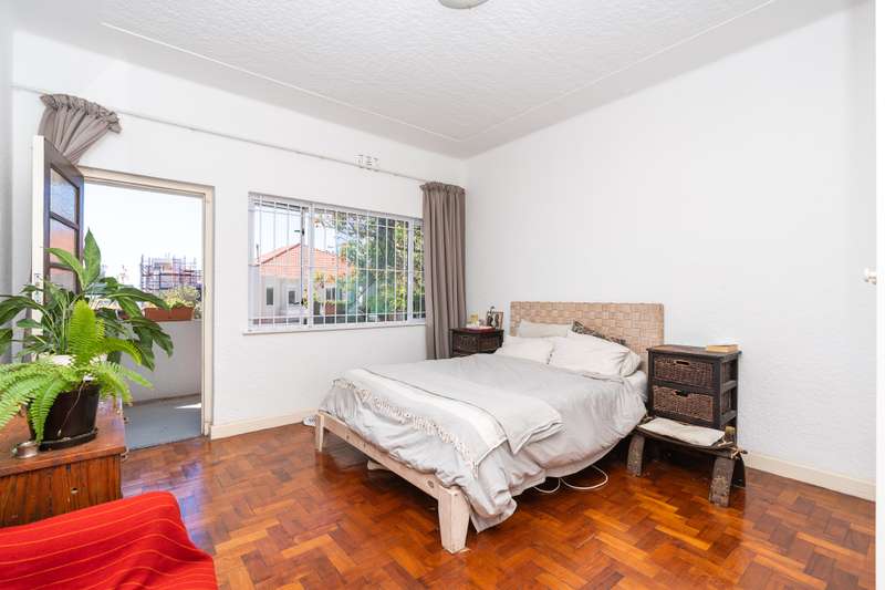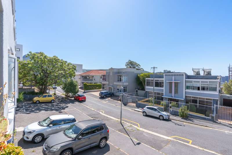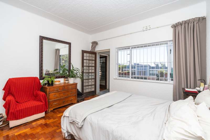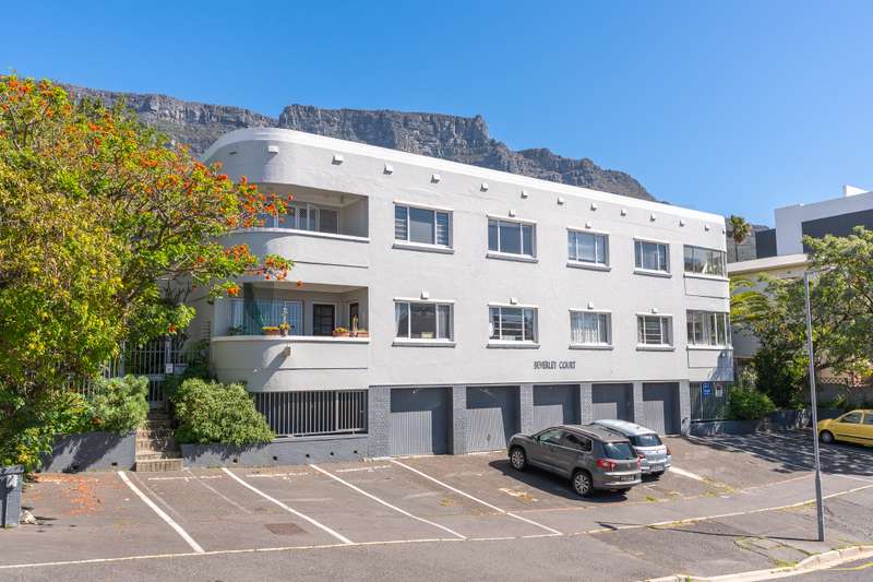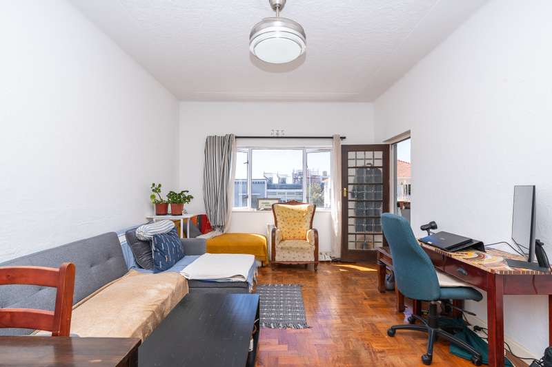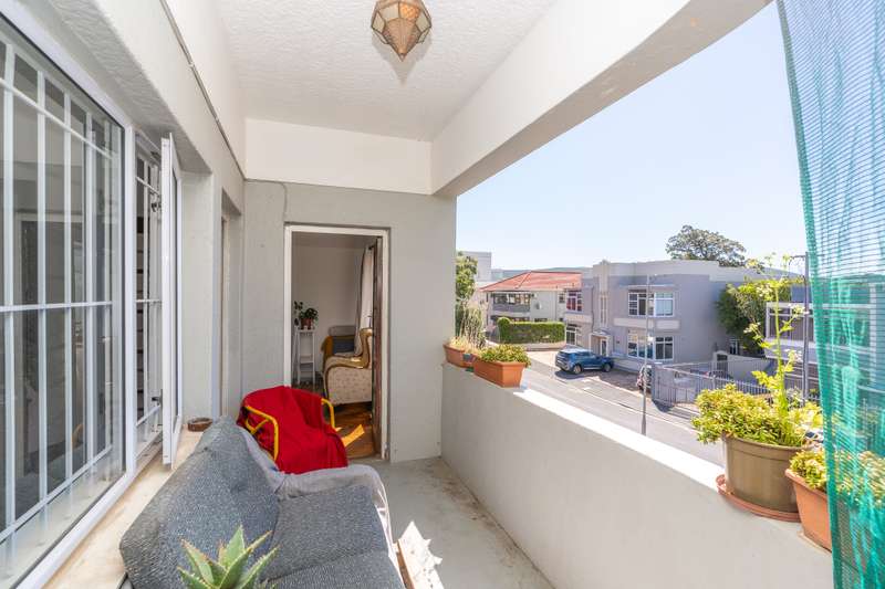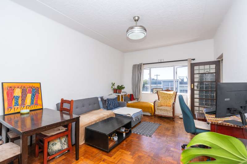 North facing, lower floor corner spacious apartment with balcony. Entrance area & large living area opens to balcony. High ceilings & parquet wooden flooring throughout. Spacious main bedroom opens to balcony. Large 2nd bedroom. Bathroom with large shower. Kitchen with ample cupboards. Store room. Opportunity to renovate. Garage with electricity, as well as space to park infront. Small, newly painted Art Deco complex of only 8 units with remote gate entrance. Communal garden & braai area. Cat friendly with Body Corporate Permission. Situated in sought after Upper Vredehoek. Close to Table Mountain trails, Derry Street shops, cafes & services. Easy access to Garden Centre, City Centre, M3 highway, Southern Suburbs & Atlantic Seaboard. Highly recommended investment property & or make this your home.