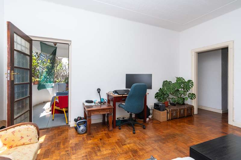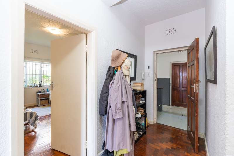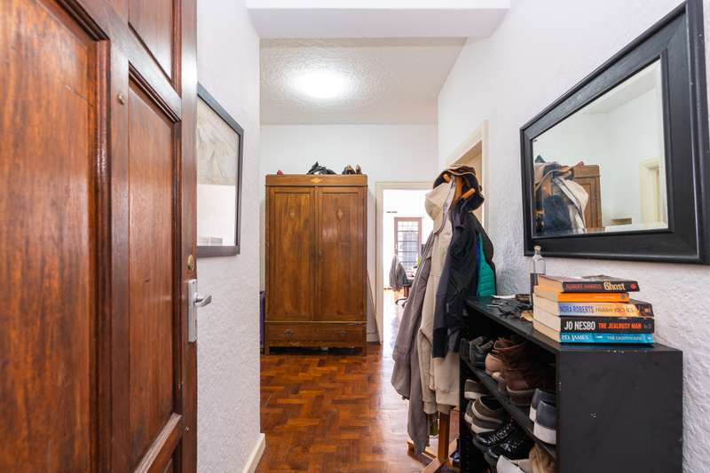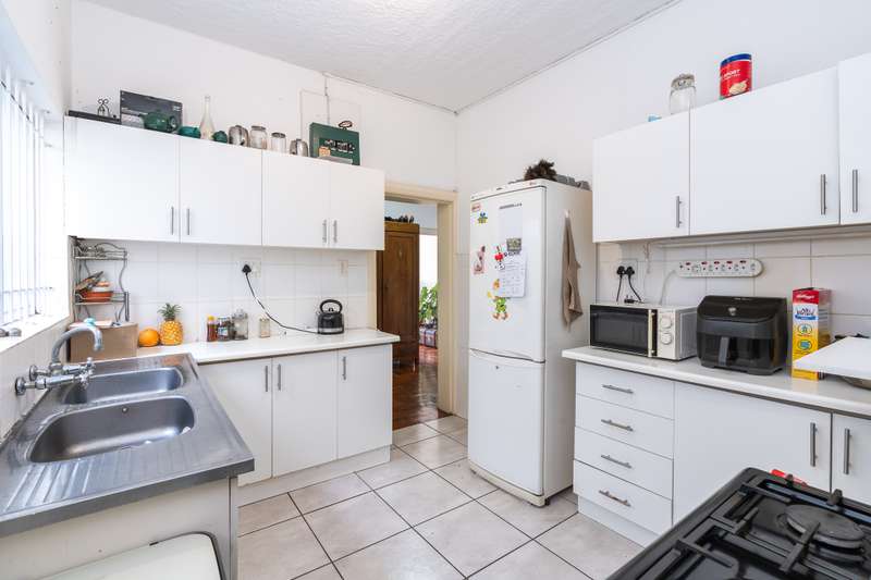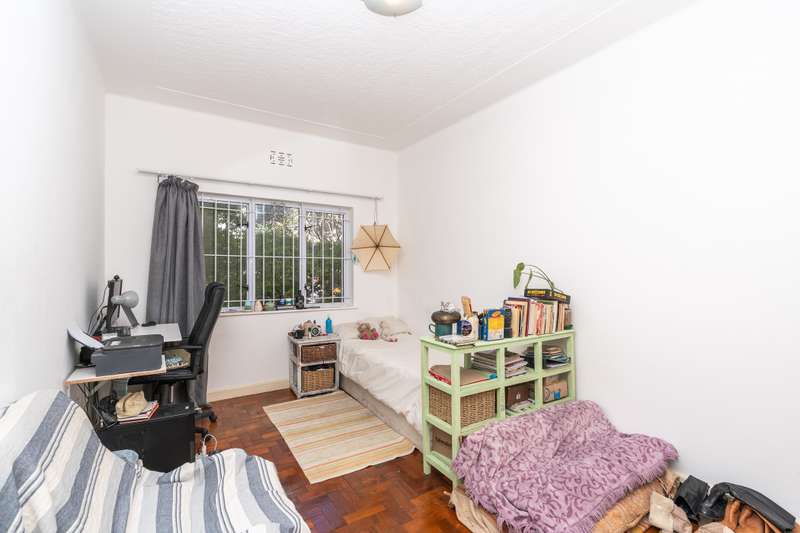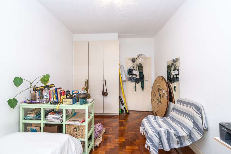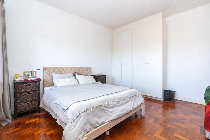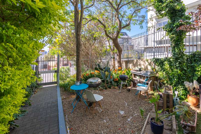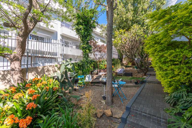 North facing, lower floor corner spacious apartment with balcony. Entrance area & large living area opens to balcony. High ceilings & parquet wooden flooring throughout. Spacious main bedroom opens to balcony. Large 2nd bedroom. Bathroom with large shower. Kitchen with ample cupboards. Store room. Opportunity to renovate. Garage with electricity, as well as space to park infront. Small, newly painted Art Deco complex of only 8 units with remote gate entrance. Communal garden & braai area. Cat friendly with Body Corporate Permission. Situated in sought after Upper Vredehoek. Close to Table Mountain trails, Derry Street shops, cafes & services. Easy access to Garden Centre, City Centre, M3 highway, Southern Suburbs & Atlantic Seaboard. Highly recommended investment property & or make this your home.