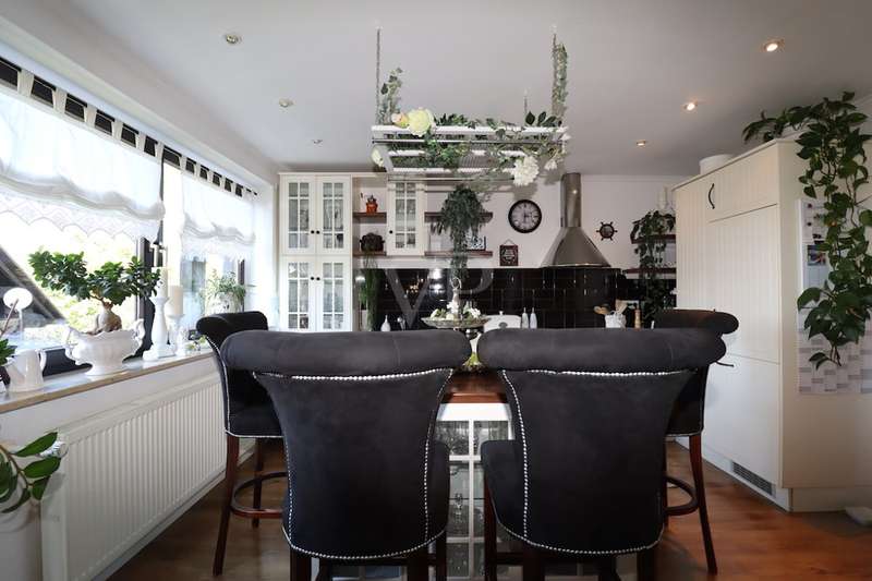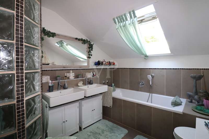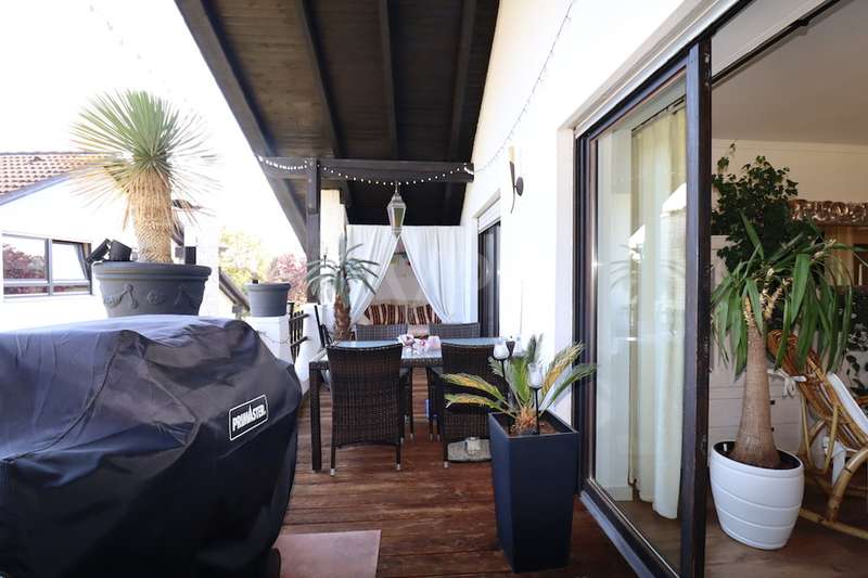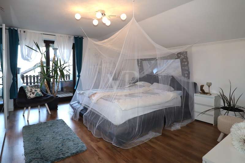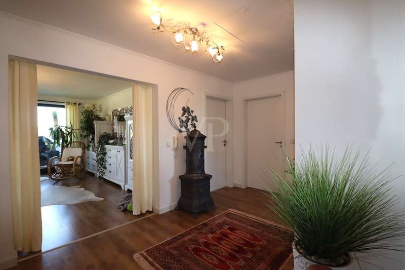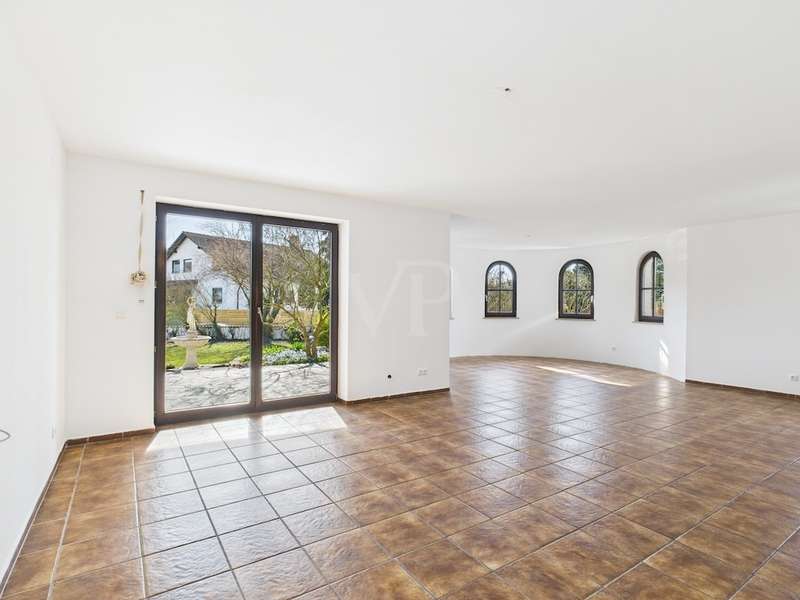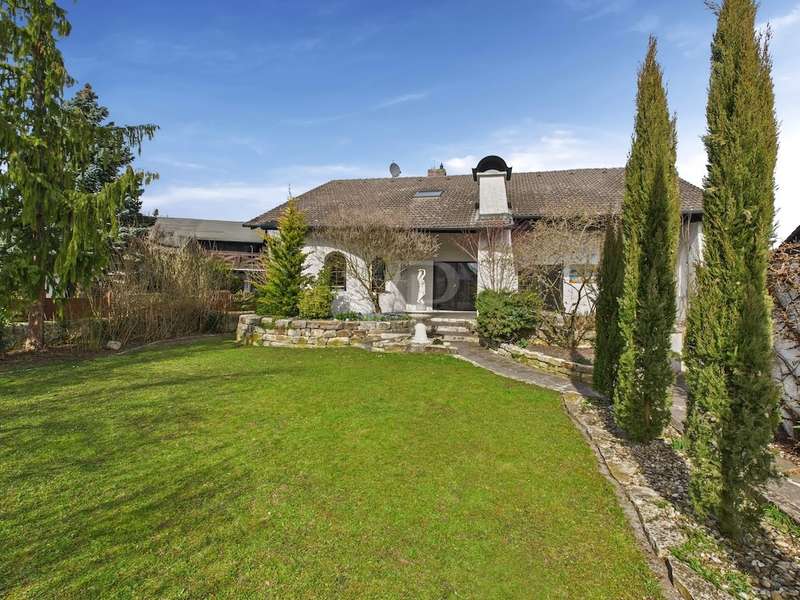 Impressive country house villa with 2 spacious apartments, full basement, double garage and beautifully ingrown garden on a plot of approx. 948 m² in a quiet top residential area, Manching. The house, built in 1984 in solid brick construction with a total of approx. 285 m² of living space, is divided into two large apartments on the ground floor with approx. 155 m² of living space and on the top floor with 130 m² of living space: Ground floor: - Living and dining room with bay window - Kitchen with dining area - Master bedroom - 2 children's rooms - Bathroom with separate bath and shower - hallway - guest WC - Covered terrace top floor: - living room - kitchen / dining - Parents' bedroom - Children's room - Bathroom with separate bath and shower - hallway - guest WC - Covered balcony The two apartments are currently let to reliable tenants. Self-occupancy can be agreed with the owner of the property. Current monthly rent on the ground floor: € 1,450 plus utilities Current monthly rent on the ground floor: € 1,000 plus utilities