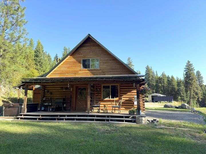 Charming log home in immaculate condition, nestled in the trees just minutes from town. The inviting first floor features a bright front room, kitchen, huge primary bedroom and covered front and rear porches. A hot tub is conveniently located off the rear deck. The house has a new metal roof, covered carport with lots of wood storage and root cellar. The large shop has a concrete floor and wood stove. The 10K solar system creates a net gain in power with all new top of the line equipment. This property has so much to offer!
