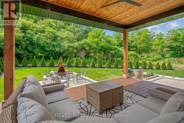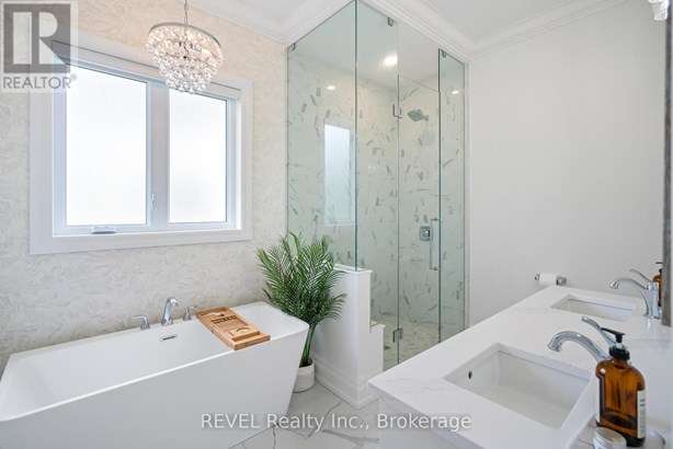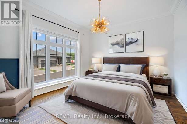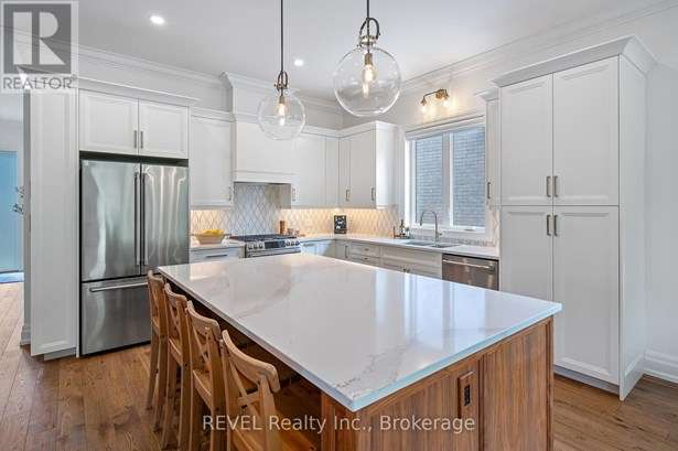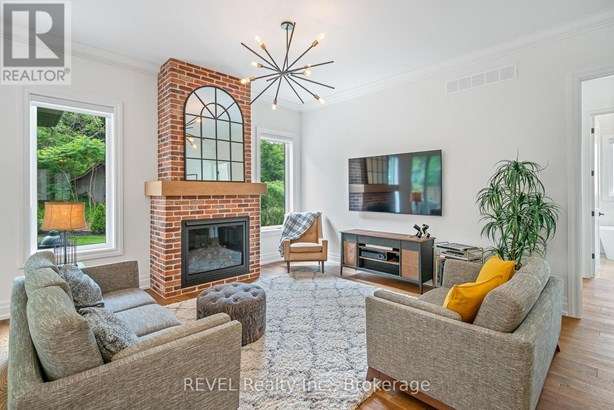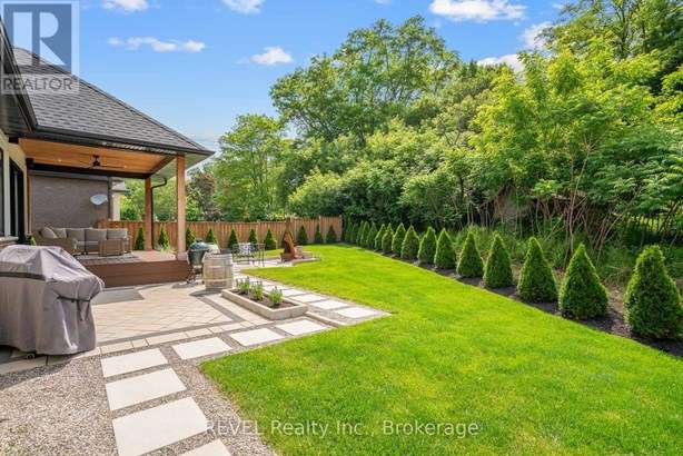 Welcome home to this stunning designer bungalow located in the beautiful wine country of Niagara-on-the-Lake; in the quaint town of St David's. This beautiful bungalow, built in 2021, offers 1644 square feet of main floor living space with 3 bedrooms and 3 bathrooms. The main floor features a spacious open concept layout with 10' ceilings and 8' doors. The designer kitchen includes an oversized walnut island with wine fridge and built-in microwave, gas range/oven with matching stainless steel appliances included. The main floor primary bathroom boasts heated floors, double sinks, a soaking tub, and a spacious glass shower. The finished basement includes a rec room with fireplace and wet bar, guest bedroom, and full bathroom, providing additional living space for your family and guests. This home is situated in a convenient location close to many wineries, and the shops and restaurants in downtown Niagara-on-the-Lake. Close to the USA Queenston border, Niagara Falls New York Airport, Buffalo Airport, QEW. There are also many great shopping options nearby, as well as private schools, golf courses, and an indoor tennis and squash club just minutes away. The garage is equipped with an outlet for EV car charging, perfect for eco-conscious homeowners. The backyard is a private oasis with a covered porch featuring a fan to stay cool in the summer months, speakers to enjoy your favourite music, and a natural gas line for outdoor cooking as well as a cozy seating area with fire pit. Live in a great community perfect for retirees, families, and anyone looking to make new friends. Make this your new dream home in wine country Niagara-on-the-Lake