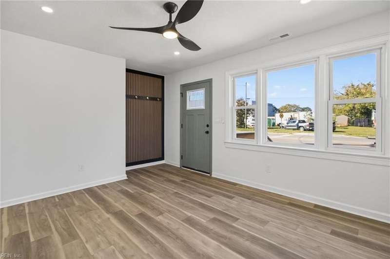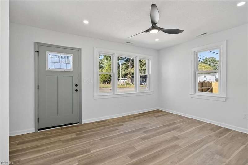 Welcome to you freshly remodeled Chesapeake charmer! This home shines inside and out with a brand-new roof, new windows, updated electrical and plumbing, and a brand-new HVAC system keeping you comfortable year-round. Step inside to discover new flooring throughout, a sleek kitchen with new stainless-steel appliances, and two beautifully designed full bathrooms- including an ensuite bedroom for extra comfort and privacy. With 3 bedrooms and 2 baths across 1,085 square feet, this home feels bright, modern, and ready to impress! Enjoy endless hot showers with your new tankless water heater, and relax knowing every major system is brand new. Outside, you'll love the brand-new fence that surrounds the entire lot-great for pets or privacy-and the detached garage with new electrical wiring for your projects or extra storage. Conveniently located near shops, schools, and interstates, this home blends style, comfort, and peace of mind from top to bottom. All that's left to do is move in!