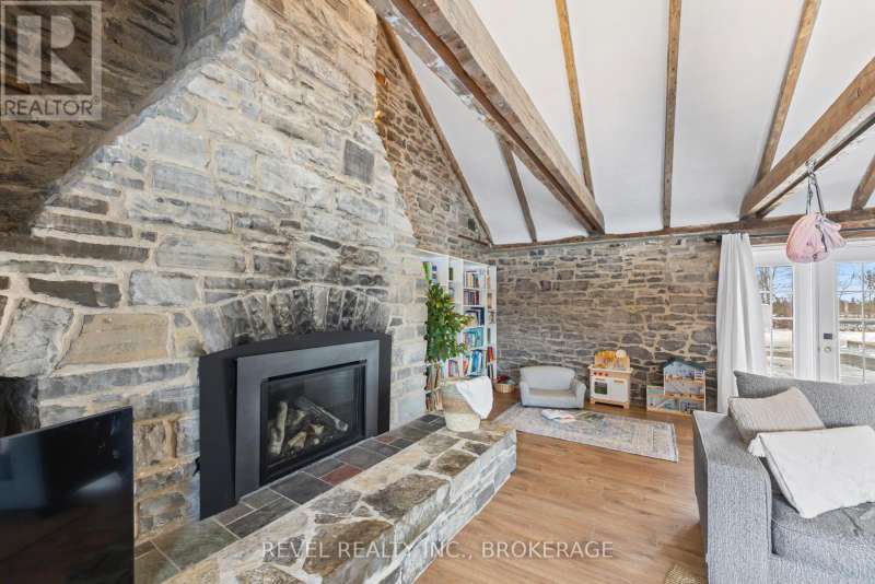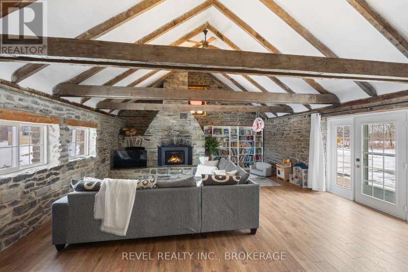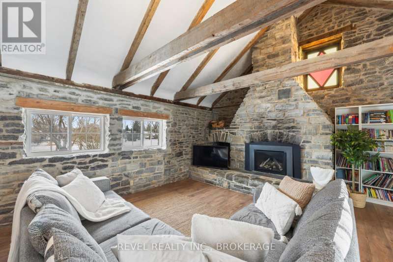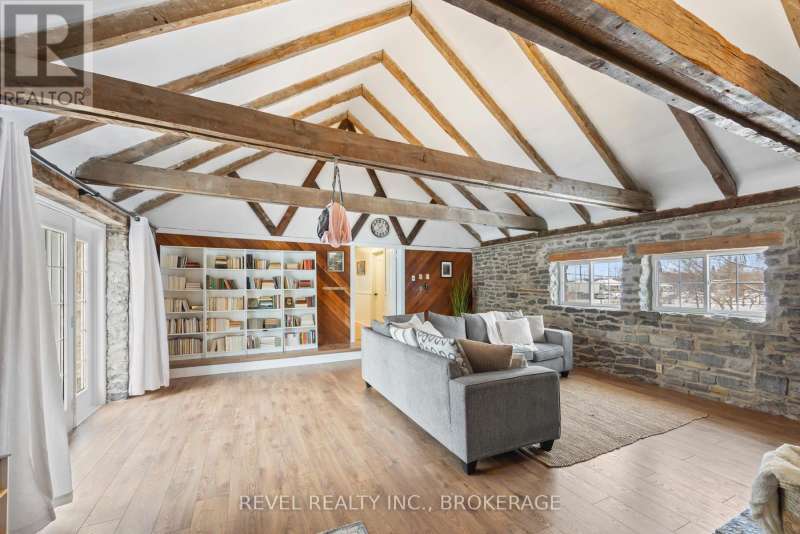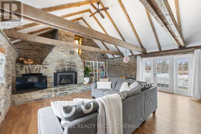 Welcome to 2964 Highway 38, a breathtaking limestone century home set on 30 picturesque acres, just 7 minutes from Kingston. This timeless residence blends historic charm with modern comforts, offering a serene escape with easy access to city amenities. This spacious home boasts over 3500 sq ft of living space, with 6 bedrooms, 3 bathrooms, and an incredible living room with vaulted ceilings and exposed beams, perfect for those cozy nights in front of the fireplace. This home used to be 2 separate wings, where 2 farming families lived- so as you move to the other wing through the cozy kitchen offering views of your barn in the backyard, you'll be greeted by a fantastic study room, whether you are looking for a home office, craft room, sitting room or library, your options are endless! Full of history, charm and character this home and property offers endless possibilities whether you dream of hobby farming, outdoor recreation, or simply enjoying the beauty of nature from your own backyard. With ample space and a stunning rural setting, this is a rare opportunity to own a piece of history with modern convenience. Don't miss your chance to experience the perfect blend of heritage and country living, just minutes from Kingston. (id:7434)