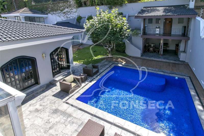 Excelente casa na melhor parte da rua, ambientes amplos e integrados. Ótimo espaço gourmet que se integraà área de jardim e piscina. Sauna e academia. Rua que conta com segurança 24 horas.