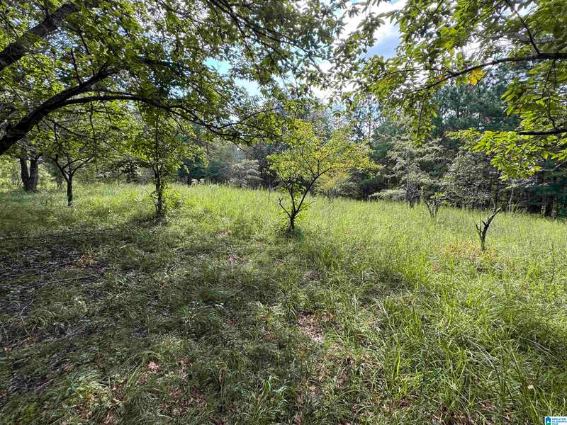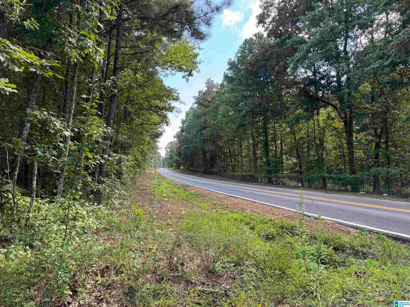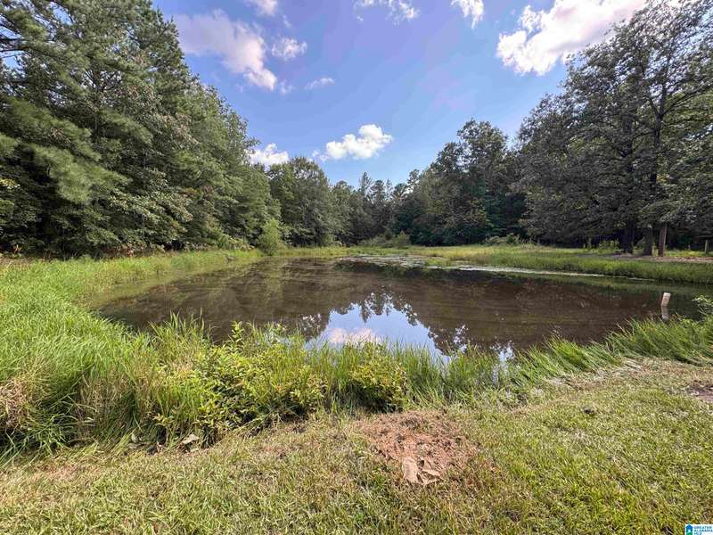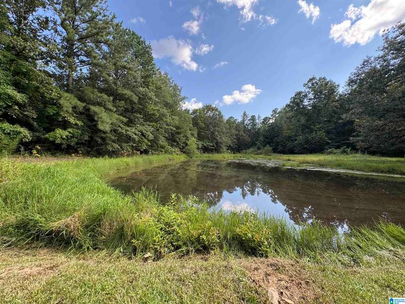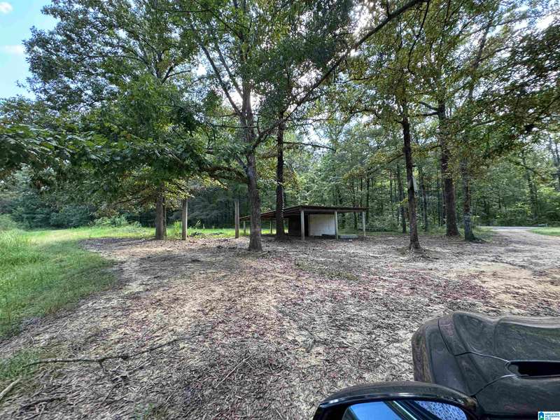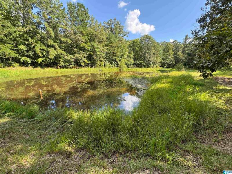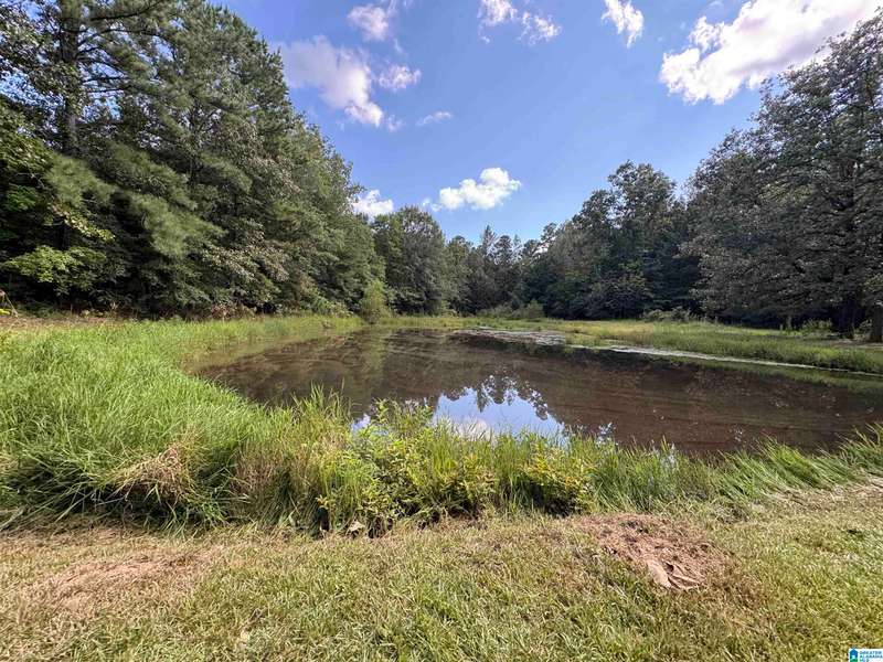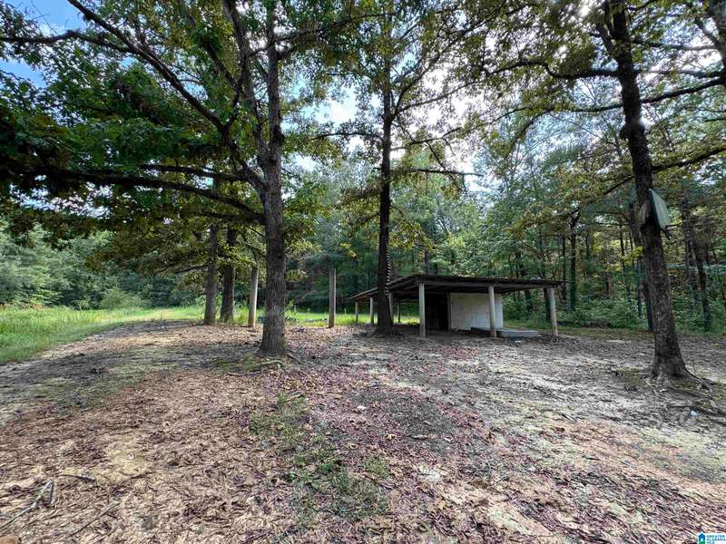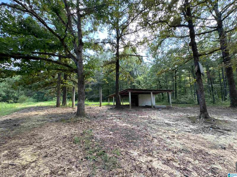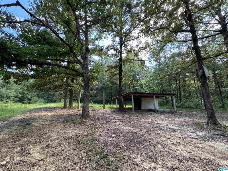The property is located along Hwy 55 in Sterrett with a small pond, older storage building, older storm shelter and acreage. The property consists of 9.45 acres per survey of rolling wooded property.