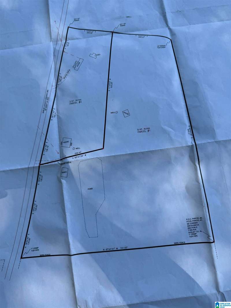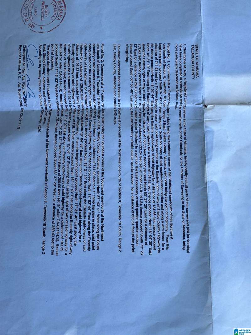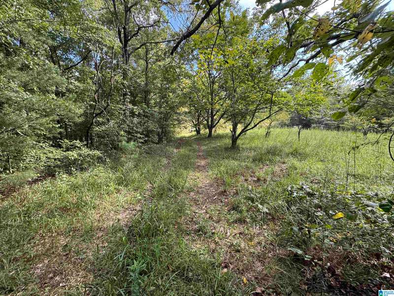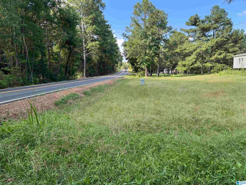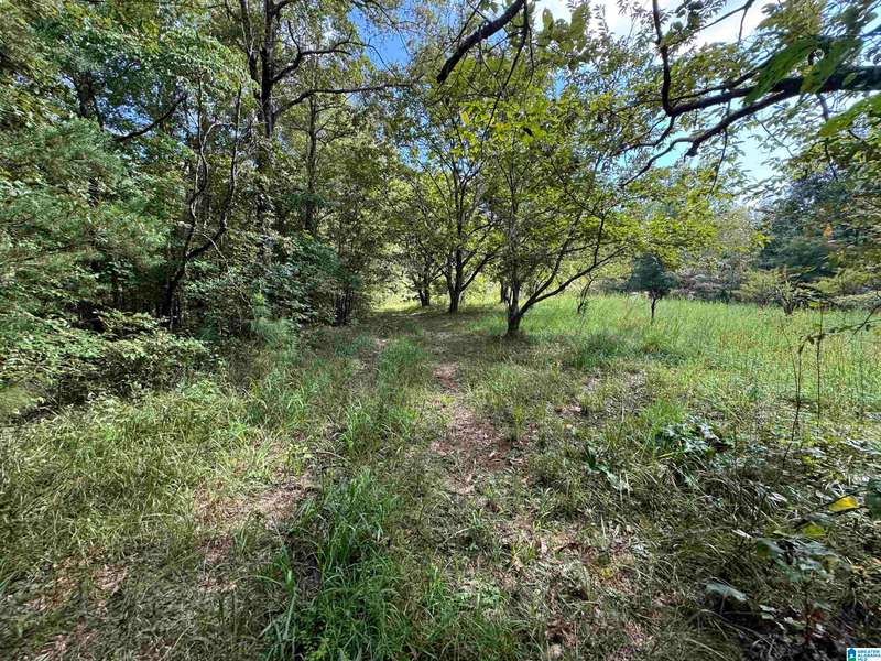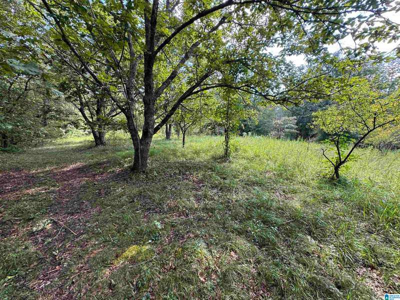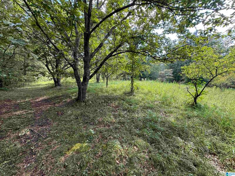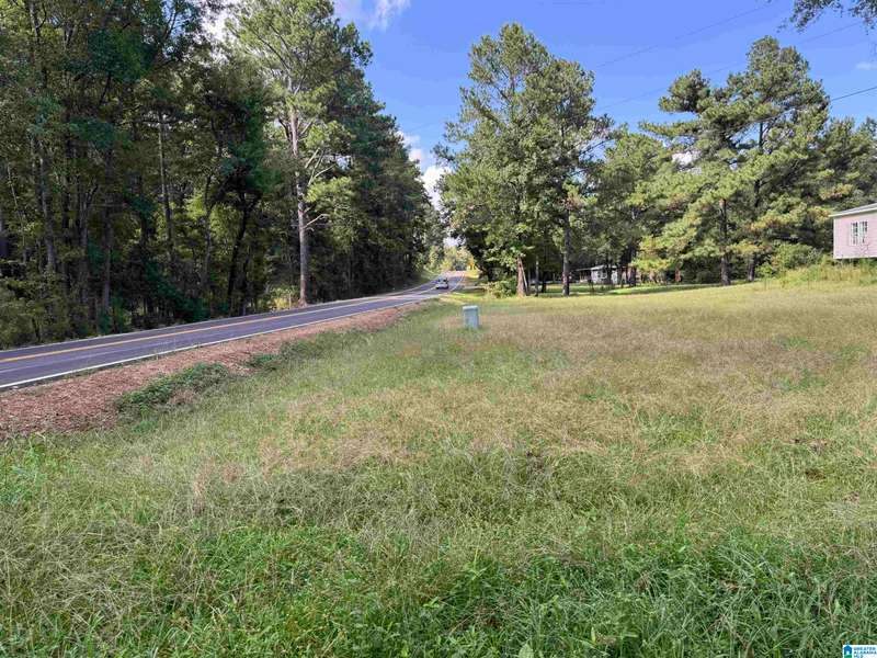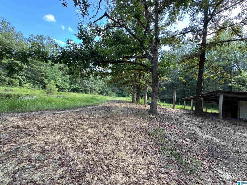 The property is located along Hwy 55 in Sterrett with a small pond, older storage building, older storm shelter and acreage. The property consists of 9.45 acres per survey of rolling wooded property.