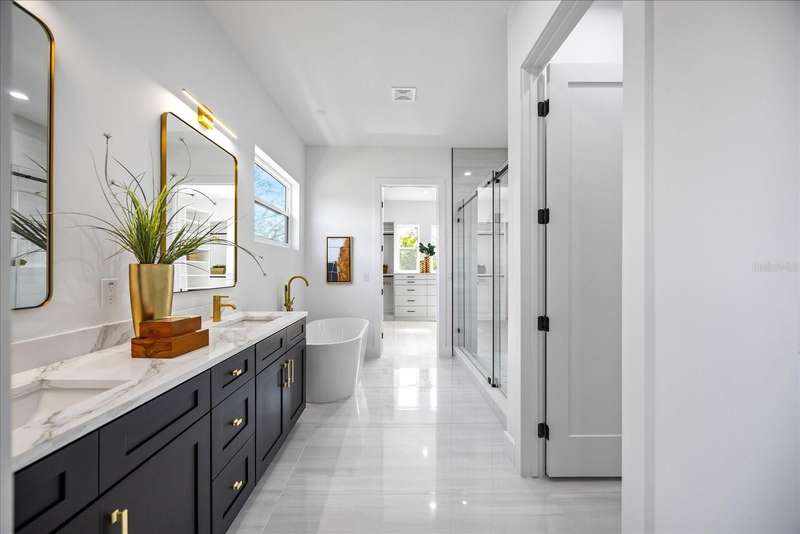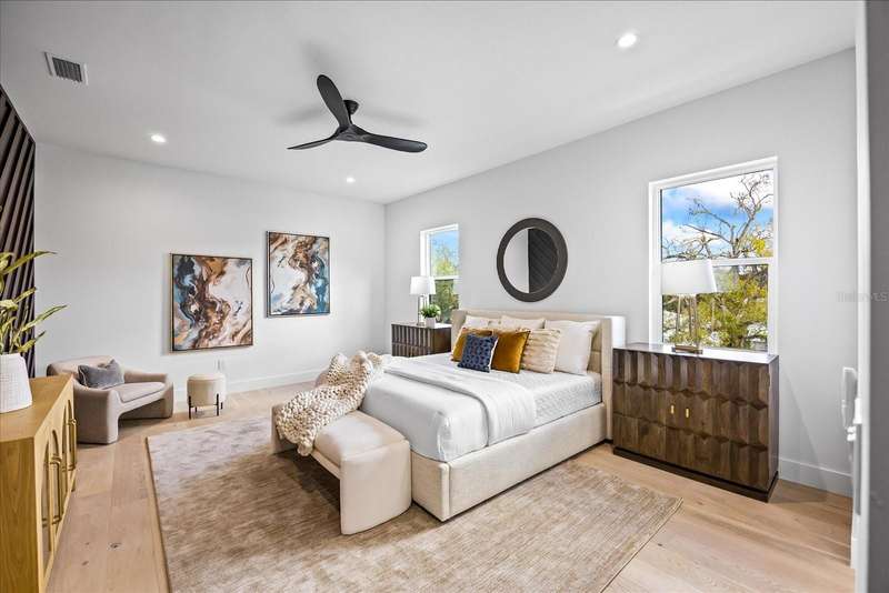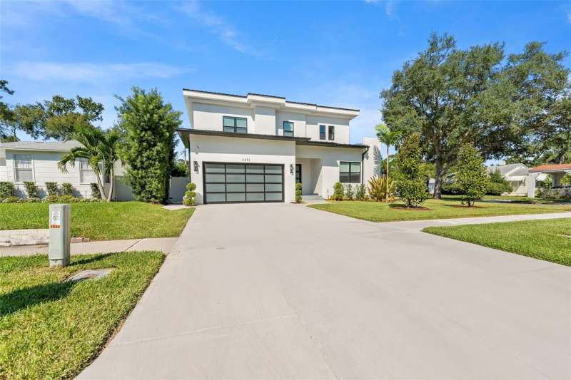 Stunning 2025 built luxury pool home offering modern design, high-end finishes, and an ideal South Tampa location. X flood zone (no flood insurance required), and A-rated Mitchell/Wilson/Plant school zone! 5 bedrooms/ 3.5 bathroom/ 3625 heated sqft. Sellers recently installed a contemporary garage door to enhance curb appeal.The open-concept layout is perfect for everyday living and entertaining, featuring a gourmet kitchen with stone countertops, premium appliances, large island, and walk-in pantry. The spacious first floor includes a guest suite or optional primary, home office, and generous storage. Upstairs, the luxe primary suite features a spa-like bath and walk-in closet with custom built-ins. Three more bedrooms and a loft are upstairs. Enjoy seamless indoor-outdoor living with a private backyard oasis, complete with a heated pool/spa, covered lanai, and lush landscaping. Additional upgrades include hardwood flooring, impact-rated windows/doors, and tankless water heater. Just minutes to top schools, Hyde Park, Midtown, Downtown Tampa, TPA Airport, shopping, dining, and beaches.