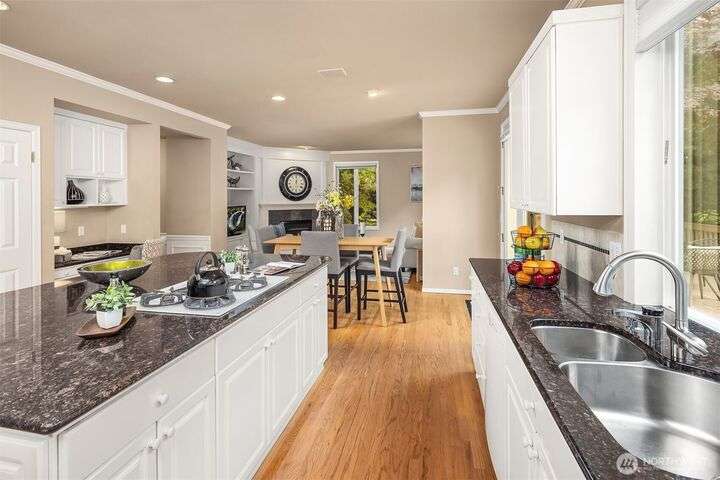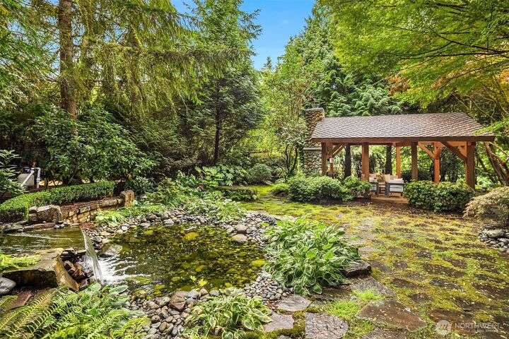 Nestled on a lush half-acre in Union Hill, this stunning Craftsman retreat blends beauty, space, and tranquility. A grand entry opens to vaulted ceilings, sunlit windows, and gleaming hardwoods. The layout flows seamlessly from formal living + dining, into a vast kitchen with granite counters, gas range + dual ovens, and onto a spacious family room with built-ins, gas fireplace and fountain views. A main-floor bonus with adjacent ¾ bath offers ultimate flexibility. Upstairs boasts 4 beds, including a serene primary en-suite, and large bonus room. Outside, enjoy your private oasis: a covered all-season gazebo with fireplace, expansive deck + spa, and captivating stone fountain surrounded by lush landscaping. Pre-inspected, A/C, coveted LWSD!