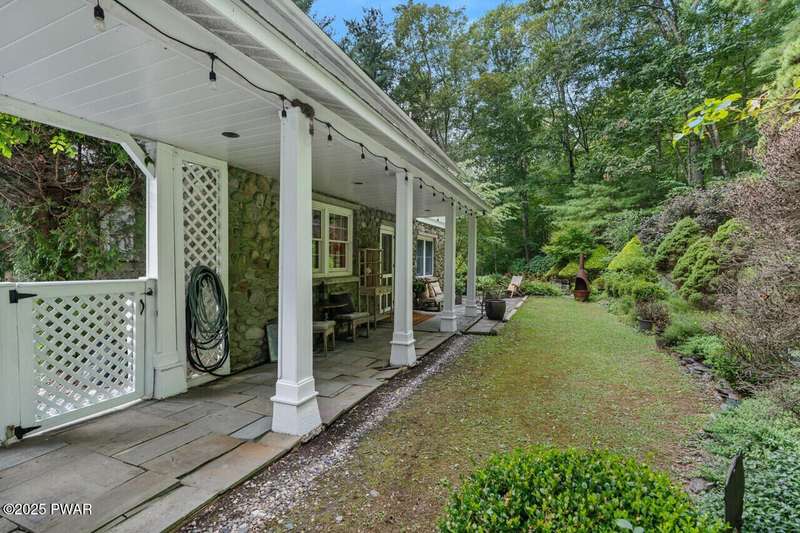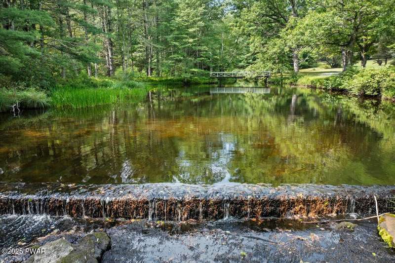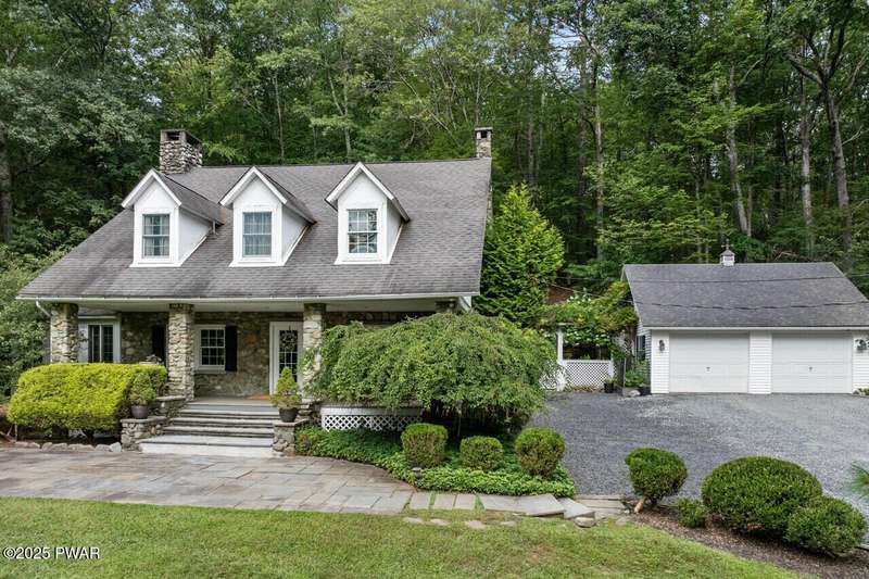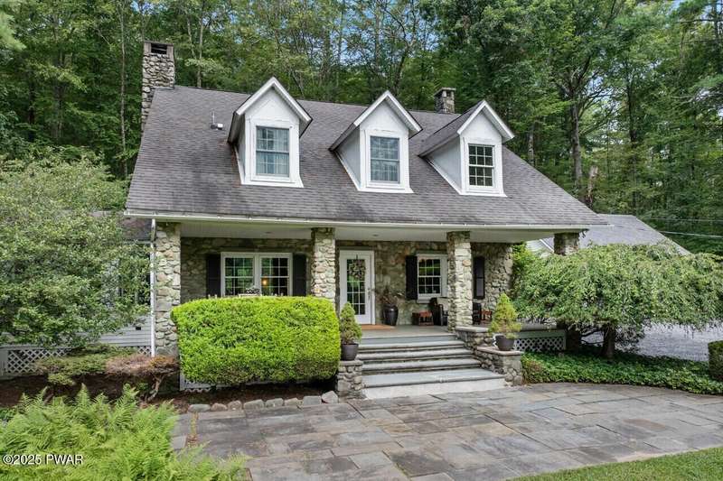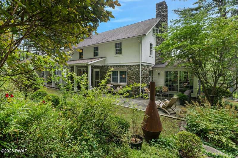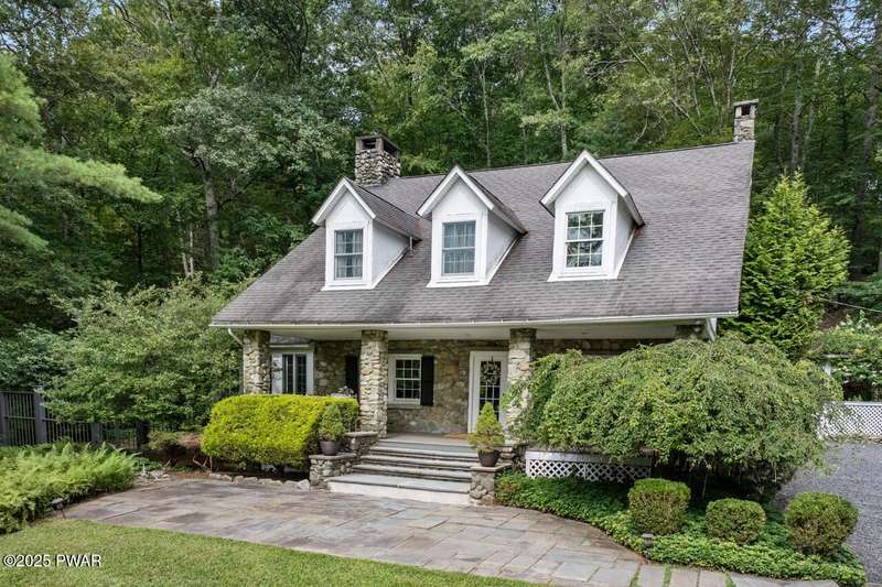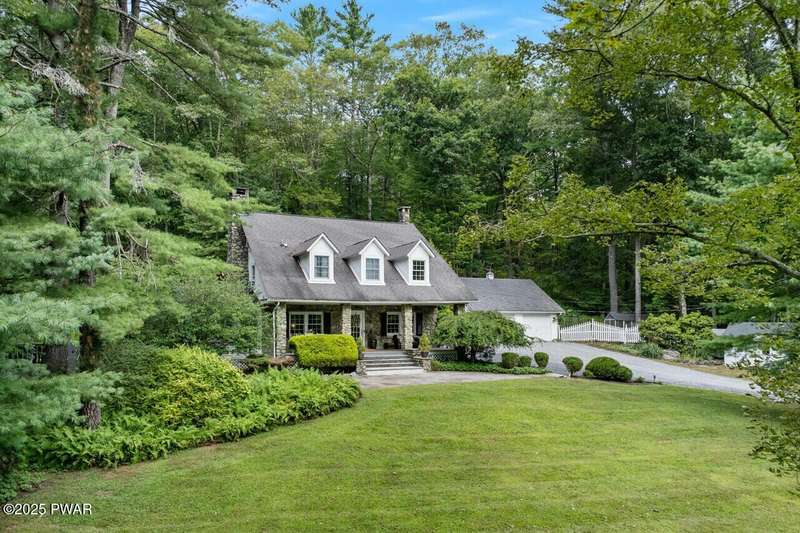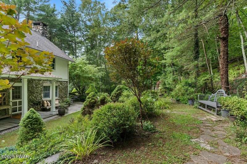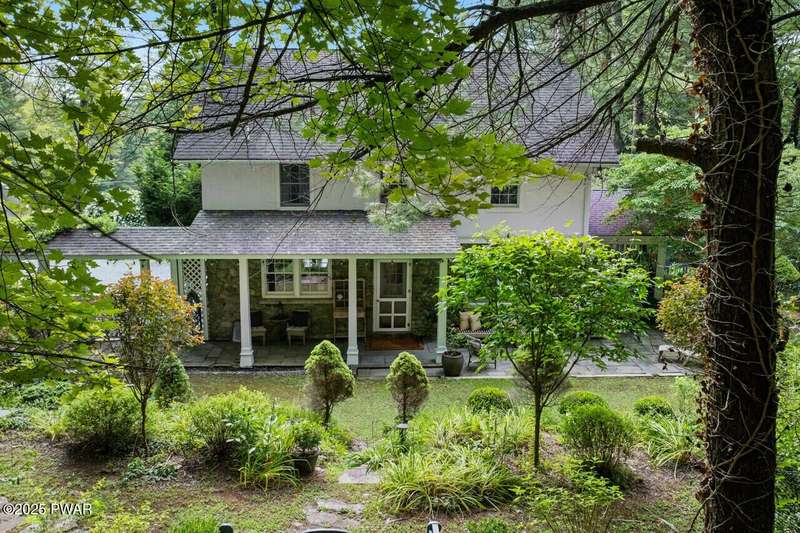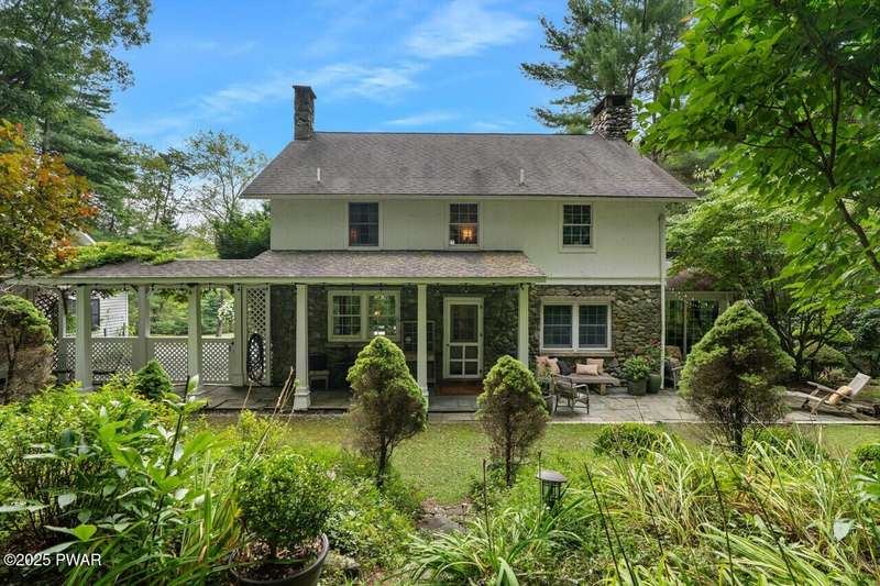 Unique Stone home tucked away in the highly private and desirable Norman Hills enclave. This distinguished property offers a sense of timeless elegance, framed by a manicured English style garden with mature shrubs and thoughtfully landscaped grounds. The residence welcomes you into light-filled interiors with timeless craftsmanship, two elegant stone fireplaces, large picture windows frame serene vistas of the surrounding nature. Covered back blue stone patio, 3 BR, 2 full baths, formal dining room, sunroom, finished usable attic. Crown jewel of this estate is its secluded waterfront setting of 1/4 mile of Raymondskill Creek frontage. Home shares 20 acres in common with the other 3 residences. Low taxes. This is more than a home, it is a sanctuary. Combination of historic charm, curated landscaping, coveted Creekside location just minutes to Historic Milford, Pa., fine dining and cultural attractions, yet a world away from the everyday. The 4 homeowners share in common the 20- acre greenbelt.