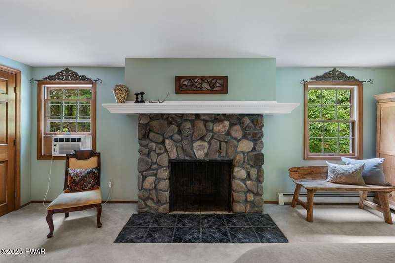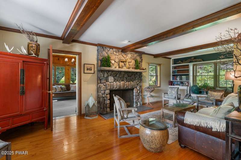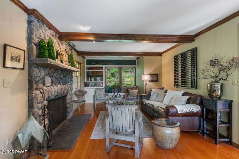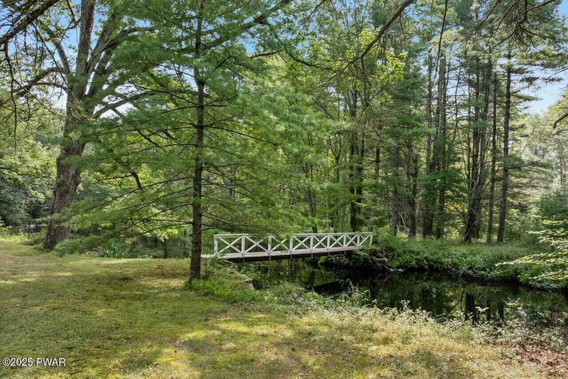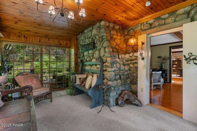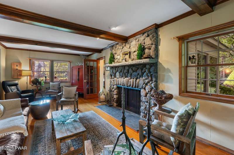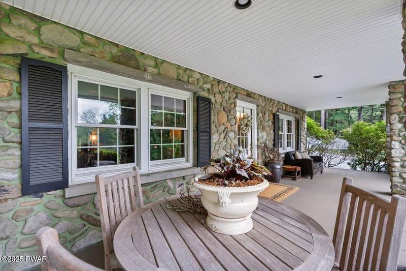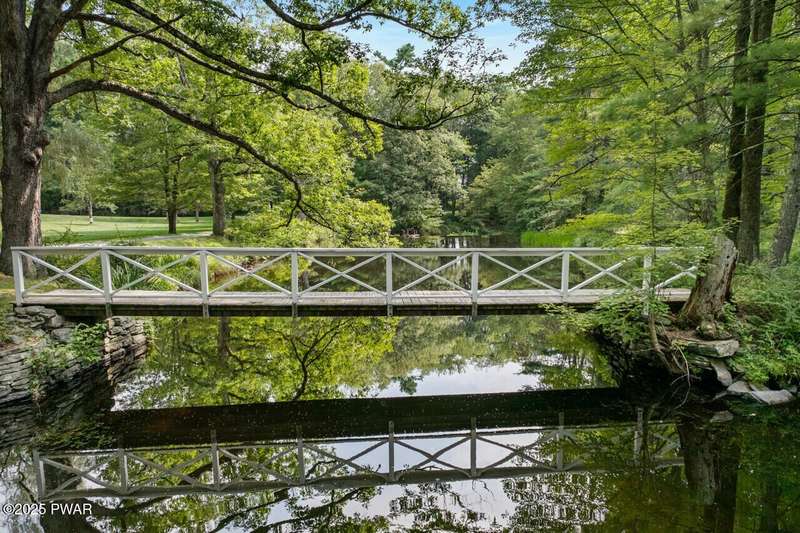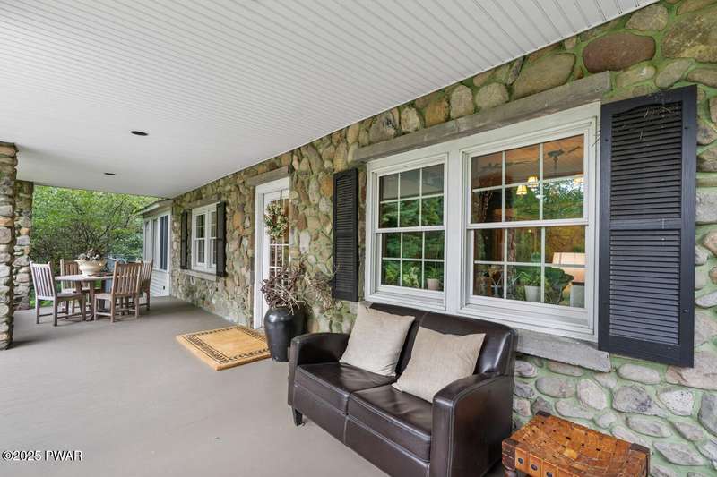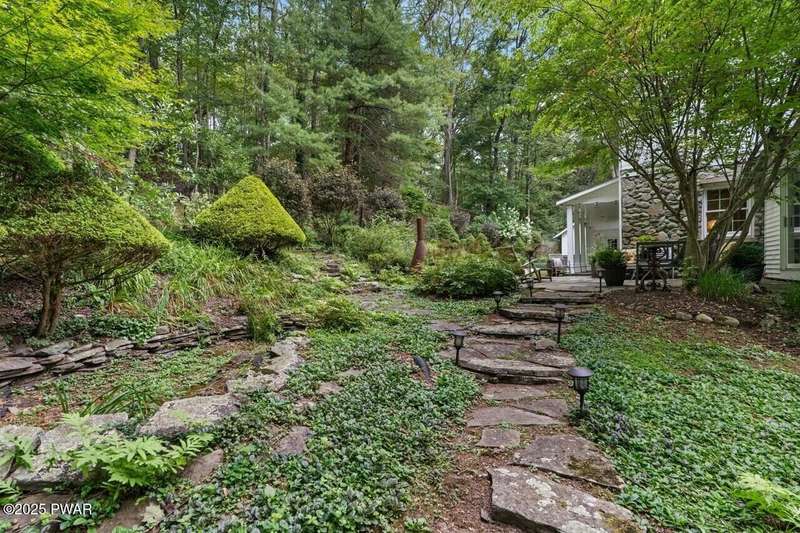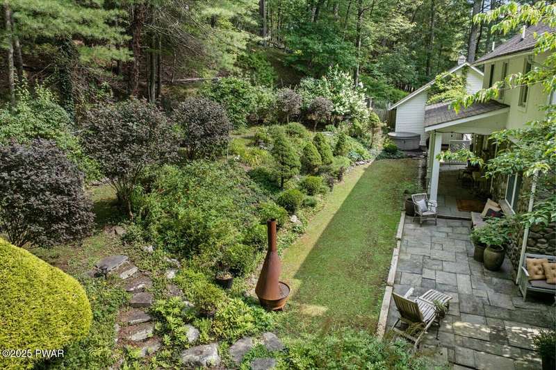 Unique Stone home tucked away in the highly private and desirable Norman Hills enclave. This distinguished property offers a sense of timeless elegance, framed by a manicured English style garden with mature shrubs and thoughtfully landscaped grounds. The residence welcomes you into light-filled interiors with timeless craftsmanship, two elegant stone fireplaces, large picture windows frame serene vistas of the surrounding nature. Covered back blue stone patio, 3 BR, 2 full baths, formal dining room, sunroom, finished usable attic. Crown jewel of this estate is its secluded waterfront setting of 1/4 mile of Raymondskill Creek frontage. Home shares 20 acres in common with the other 3 residences. Low taxes. This is more than a home, it is a sanctuary. Combination of historic charm, curated landscaping, coveted Creekside location just minutes to Historic Milford, Pa., fine dining and cultural attractions, yet a world away from the everyday. The 4 homeowners share in common the 20- acre greenbelt.