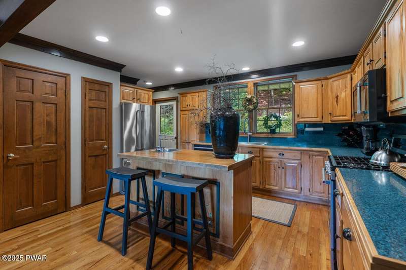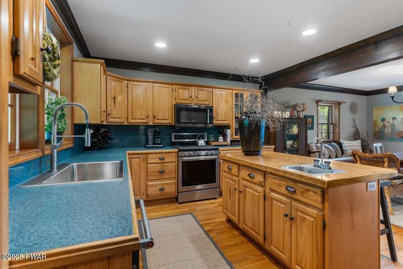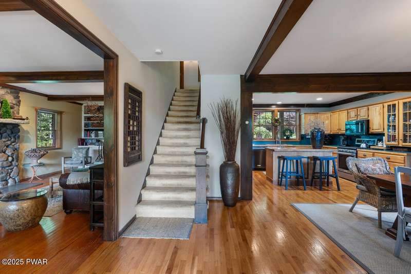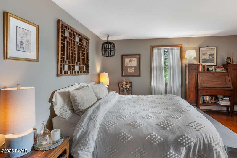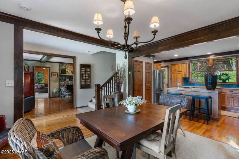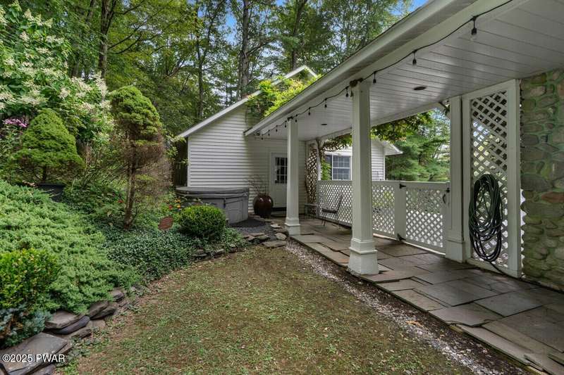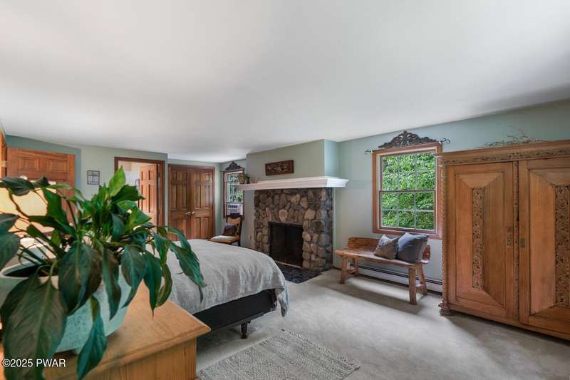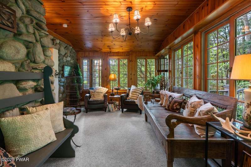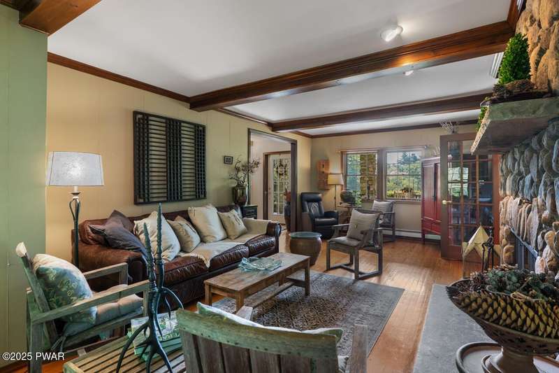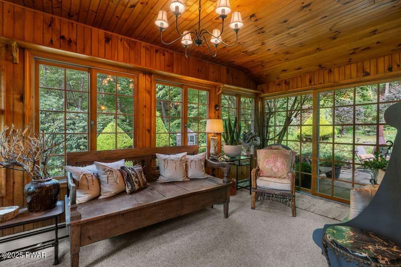 Unique Stone home tucked away in the highly private and desirable Norman Hills enclave. This distinguished property offers a sense of timeless elegance, framed by a manicured English style garden with mature shrubs and thoughtfully landscaped grounds. The residence welcomes you into light-filled interiors with timeless craftsmanship, two elegant stone fireplaces, large picture windows frame serene vistas of the surrounding nature. Covered back blue stone patio, 3 BR, 2 full baths, formal dining room, sunroom, finished usable attic. Crown jewel of this estate is its secluded waterfront setting of 1/4 mile of Raymondskill Creek frontage. Home shares 20 acres in common with the other 3 residences. Low taxes. This is more than a home, it is a sanctuary. Combination of historic charm, curated landscaping, coveted Creekside location just minutes to Historic Milford, Pa., fine dining and cultural attractions, yet a world away from the everyday. The 4 homeowners share in common the 20- acre greenbelt.