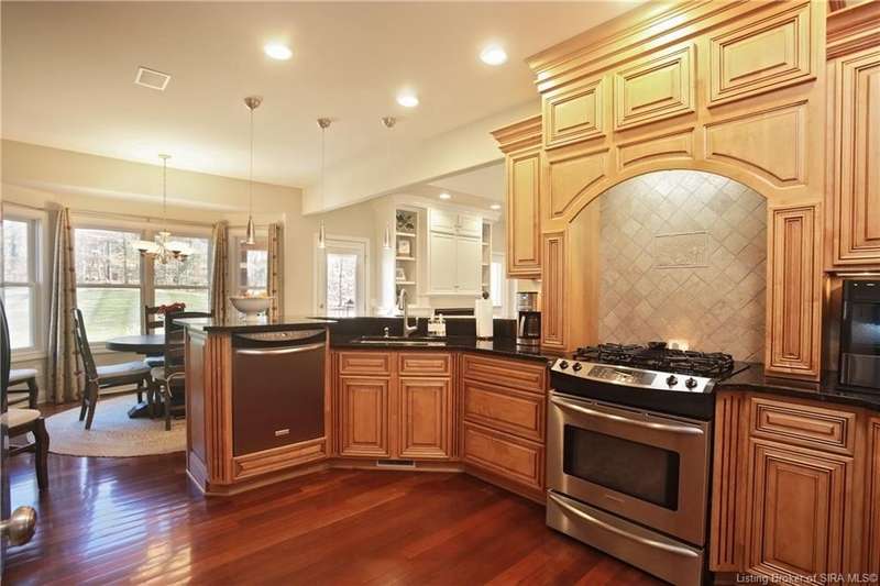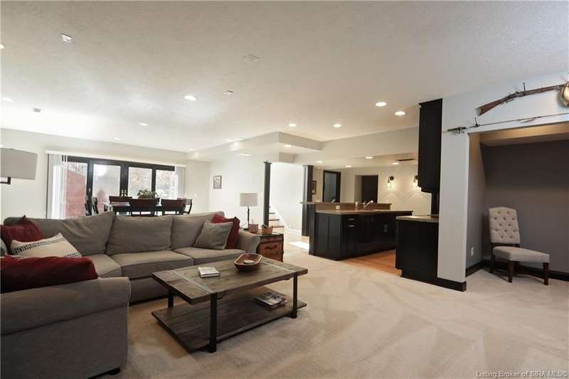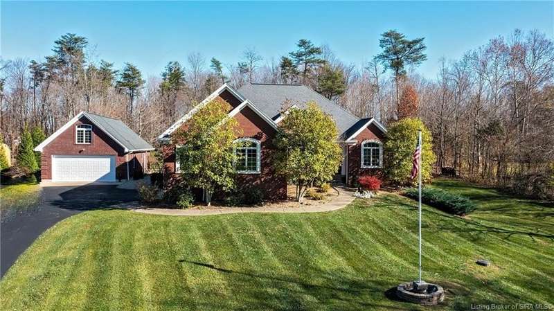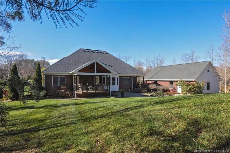 Just what you’ve been waiting for—a sprawling ranch on a 1.3 acre pristine lot with treed privacy! A gracious foyer entry opens to formal dining and dramatic great room w/fireplace, extensive millwork & soaring ceilings. The chef’s kitchen features granite countertops, breakfast bar, custom backsplash, corner pantry, and dining area overlooking the private lawn. The split bedroom floorplan offers a private primary suite with cozy sitting room, access to private covered deck, and spa-like bathroom w/extended vanity, frameless shower & garden tub, as well as a walk-in wardrobe closet. Two other generous bedrooms sharing a hall bathroom, and the laundry room, complete this level. A striking architectural window floods natural light onto the split staircase leading to the walkout LL—perfect for entertaining with an open layout featuring a full kitchen/wet bar, rec/billiards area, family room, studio/office, guest bedroom and full bath. Outdoor living spaces include a side patio and another covered deck, enveloped by the surrounding lush landscaping. In addition to the attached 2-car garage, there is a brick paver walkway leading from the outdoor living spaces into an oversized additional garage with workshop space & staircase to a full attic that could be finished—for the auto or hobby enthusiast! Fantastic location near Highlander Point w/easy access to expressway, shopping, schools, dining & more!! New roof on both structures in 2025. Septic permit is for 3 bedroom home.