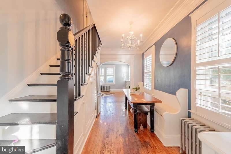 Let the hardwood floors, high ceilings, intricate trim, and crown molding throughout, wow you with a warm welcome. There are custom white shutters in the dinning and living room to add syle and ambiance.