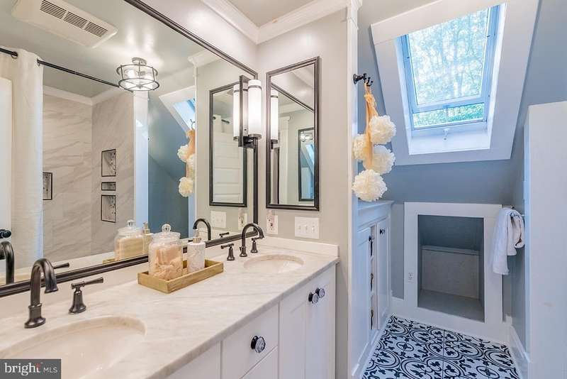 The Main level has 2 bedrooms and a newly renovated full bathroom complete with a claw foot tub and barnwood-styled ceramic flooring. The hallway has built-in bookcases and lots of storage, There is Radiant and central heat throughout the main level and lower level. The upper level offers 2 more bedrooms, each with their own walk-in closets and a shared updated bathroom with a large shower, quartz counter tops, stylish lighting, and a skylight for plenty of natural light.