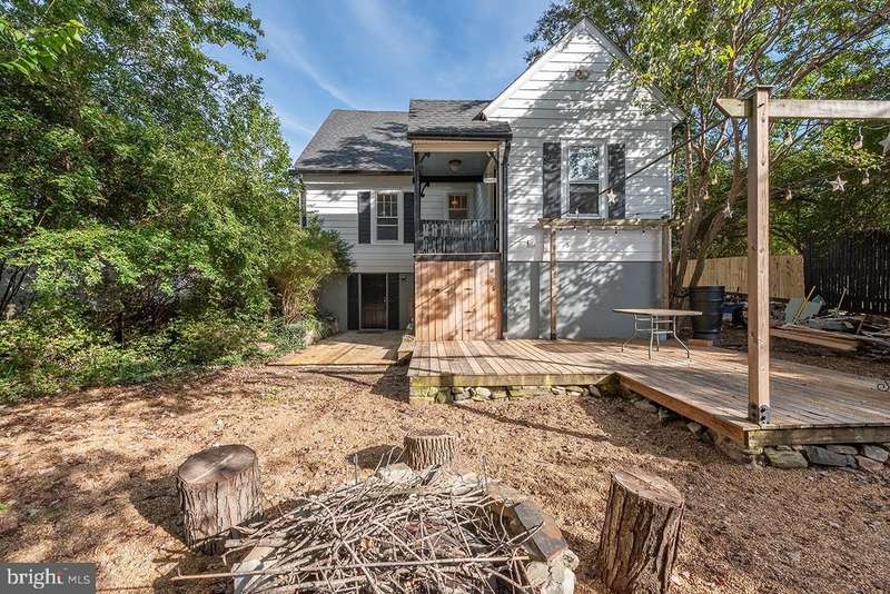 The backyard is Fully fenced with a fire pit, 2-level wood deck, under-stair shed, and 2 custom tree houses.