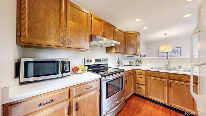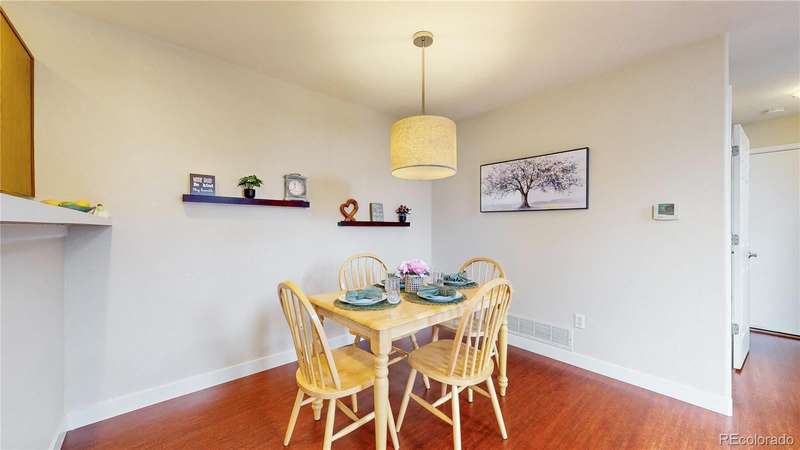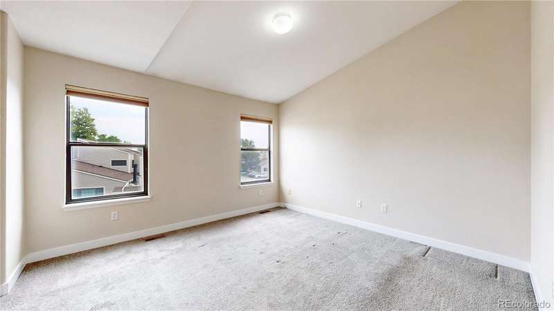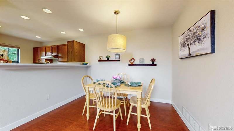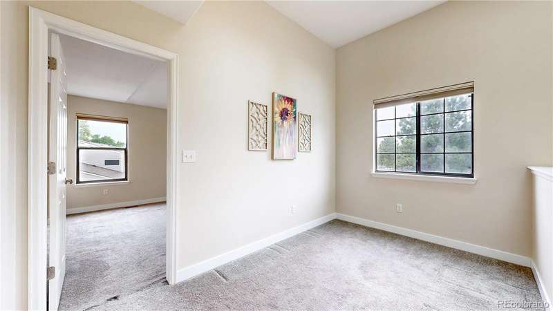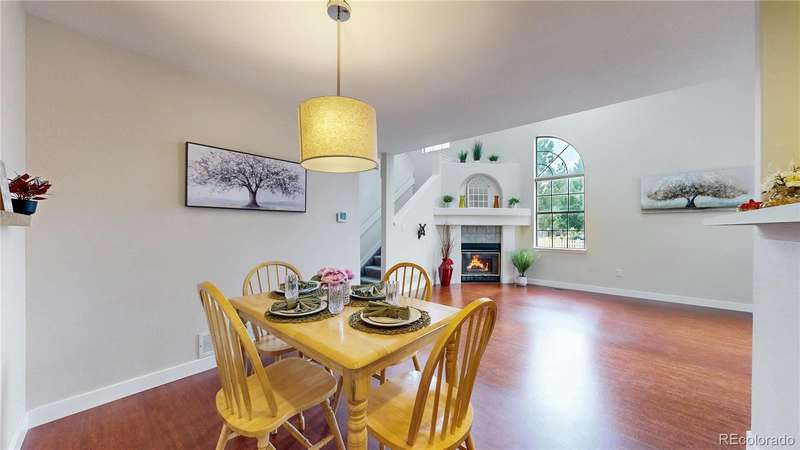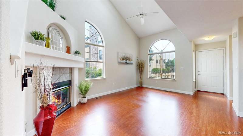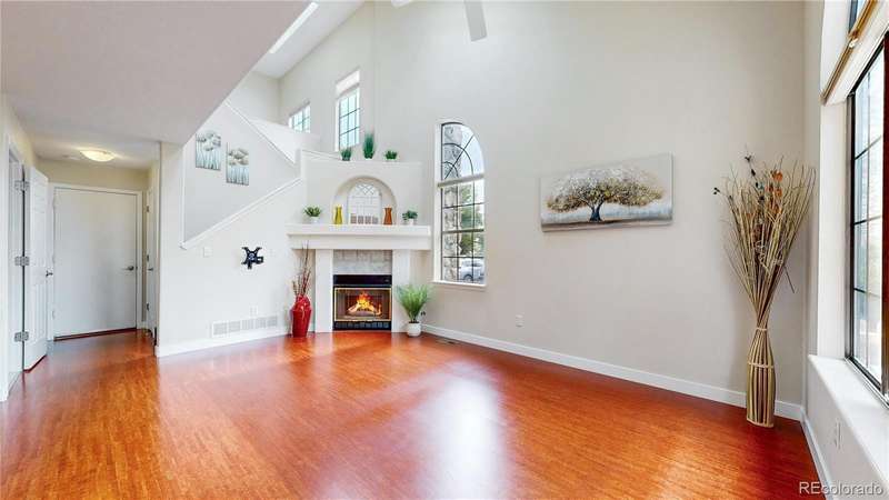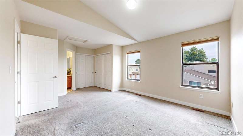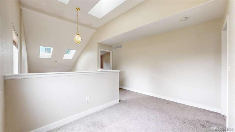 PRICE ADJUSTMENT...AND A SELLER CONCESSION!!! Charming end-unit townhome in Arvada's Vista Village community. Light, bright entrance invites visitors in to a living room with vaulted ceiling, skylights and gas fireplace perfect for a chilly winter evening. Kitchen features a brand new refrigerator and stainless appliances, while the dining room is ideal for gatherings with family and friends. Updated main floor powder room and laundry. Upstairs, enjoy a versatile loft space perfect for a home-based business, craft space, or fitness. Both bedrooms suites are spacious and private, each with full bathrooms for convenience. Attached 2-car garage offers privacy and security. Community pool brings summer enjoyment as well. Near parks, retail, dining and more! First American Home Warranty being offered for peace of mind. Well priced, turnkey opportunity for the next owners. Welcome home!!