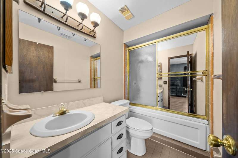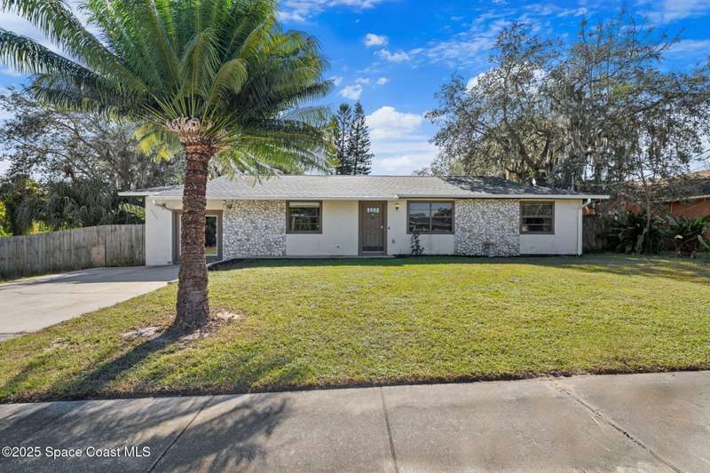 Dive into Florida living with this spacious Port St John pool home on a fenced .26-acre CORNER LOT! Enjoy a SCREENED POOL with tranquil waterfall feature, RESURFACED in 2023 ($10k), plus plenty of patio space for lounging and entertaining friends. Big-ticket items are already done: SEPTIC SYSTEM REPLACED IN 2020 and NEW ROOF and GUTTERS IN 2022, plus the peace of mind of CITY WATER. Inside, you'll find 4 bedrooms PLUS a 20 ft x 13 ft bonus room, a main living room PLUS a 2nd large living room/den-perfect for a home office or flex space. Easy-care flooring throughout and NO CARPET. Brand new vinyl flooring in the primary bedroom. Wood look tile throughout the kitchen, dining, 2nd living area and 4th bedroom. Flooring replaced throughout the living room and other bedrooms within the last 5 years. The backyard offers room to roam, with 2 outdoor storage sheds for tools, toys, or hobbies. Over 2,100 sq ft-move in and start enjoying that Florida lifestyle!