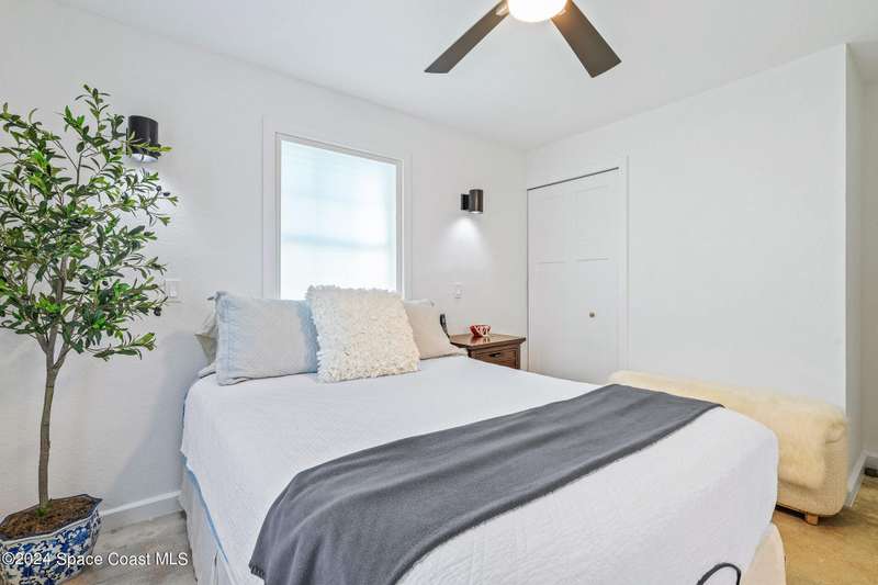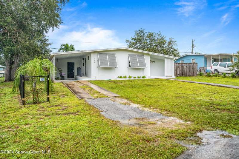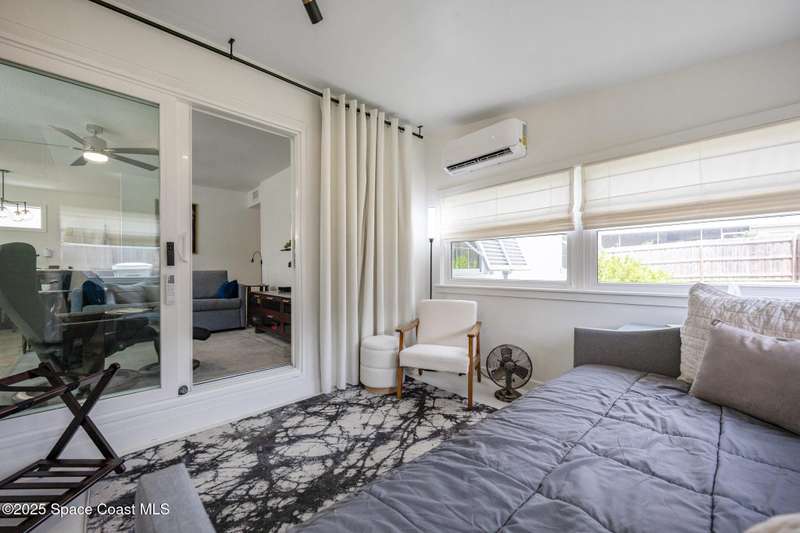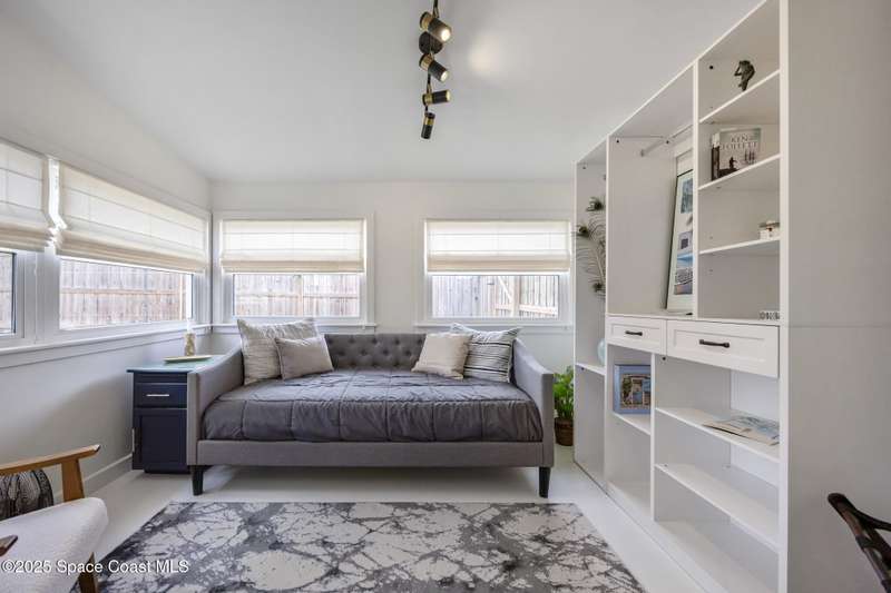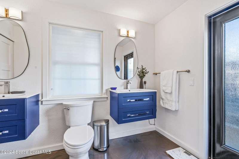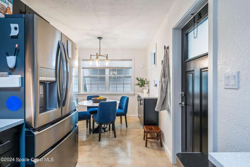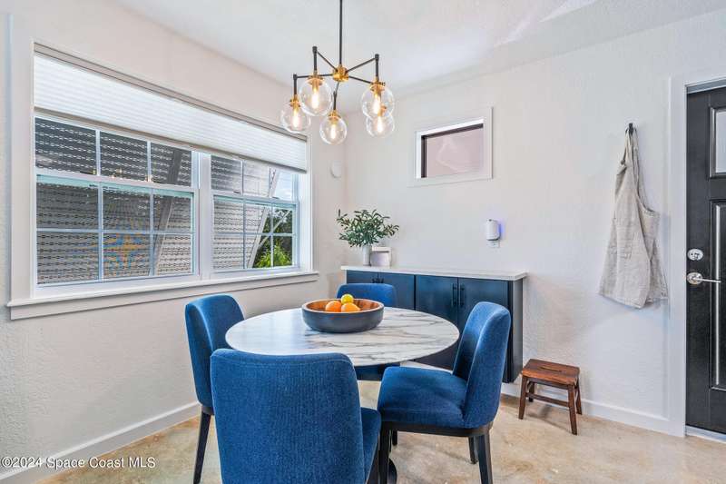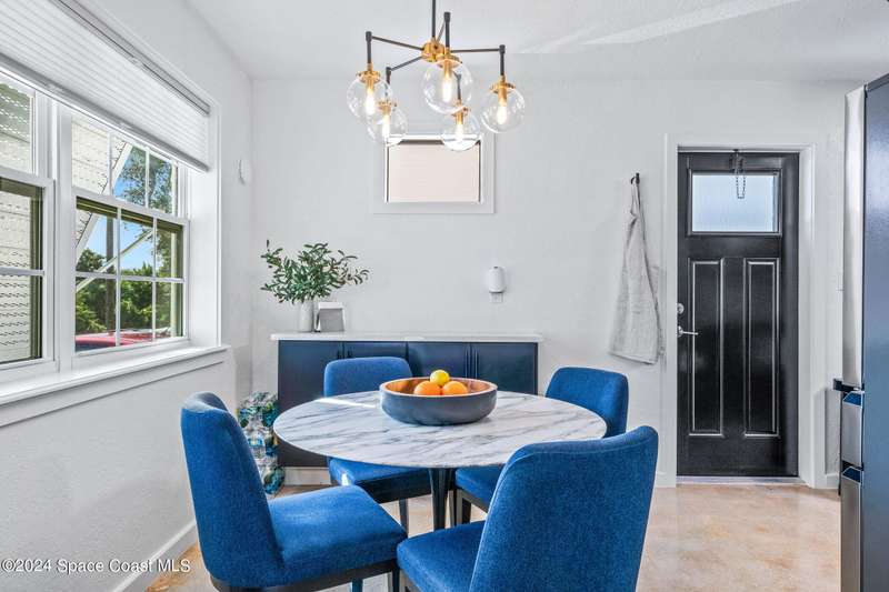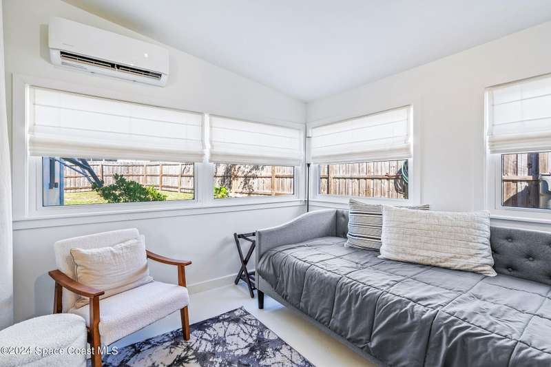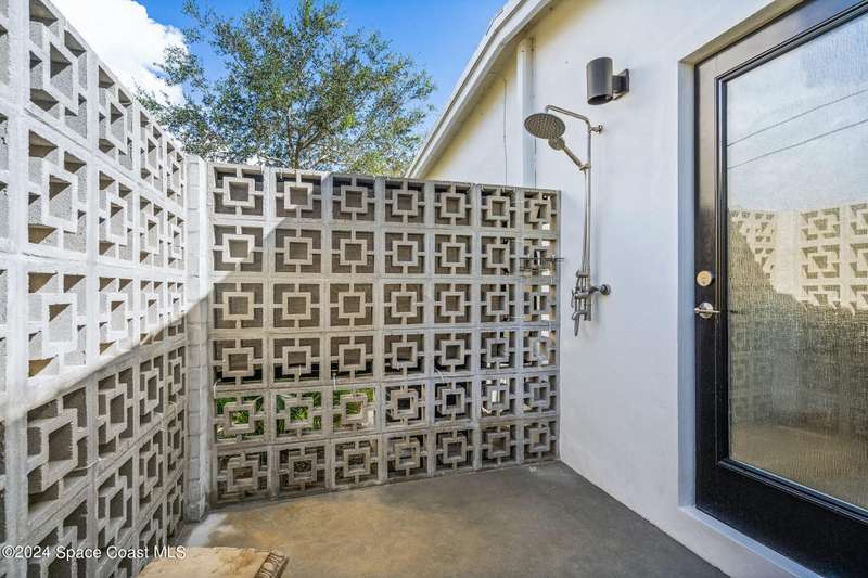 Artfully restored mid-century modern home blending timeless design with modern updates, perfect for downsizers, snowbirds, or STR investors. A newer standing seam white metal roof, impact windows/doors, & rare A-1 insurance rating provide peace of mind and lower insurance costs. Inside, polished concrete floors, vintage-inspired lighting, and custom trim showcase the professional remodel. The chef's kitchen features quartz counters, high-end appliances, Thomasville cabinetry, and a wine cooler drawer. The extended primary suite offers four closets, Indow window inserts for privacy/noise reduction, and a luxurious new bath with double vanities and oversized linen storage. The AC'd guest room adds flexible space for guests or office. Outdoors, enjoy a fenced backyard with a spa-style double shower. With updated systems, full storm protection, and stylish finishes throughout, this home offers low-maintenance living in a prime Vero Beach location.