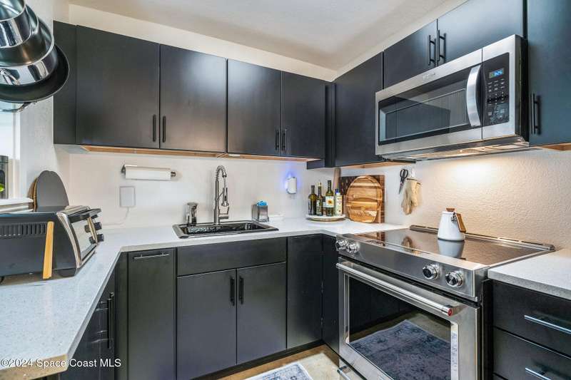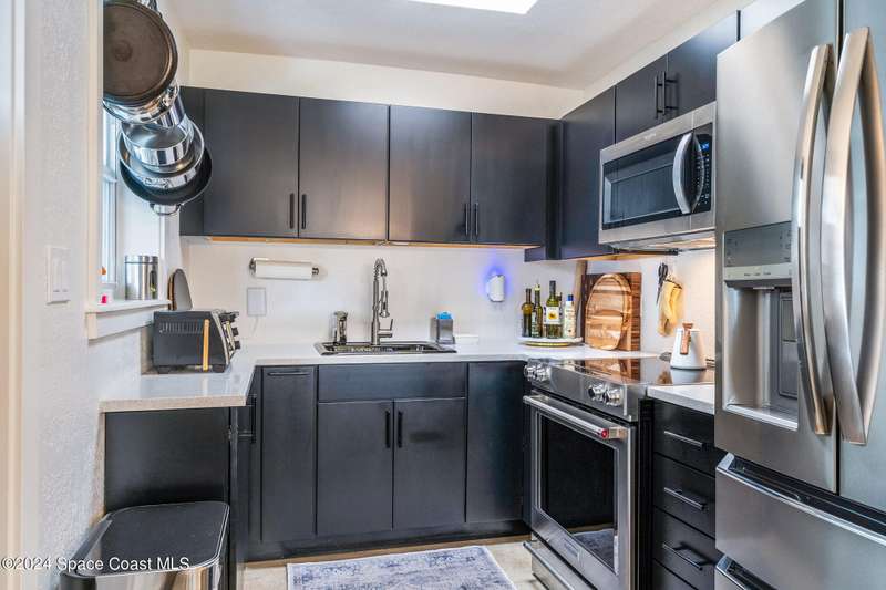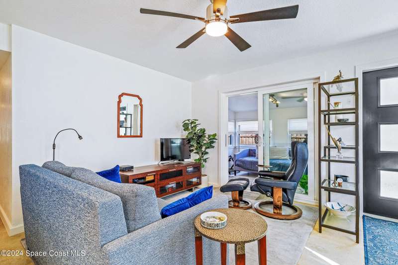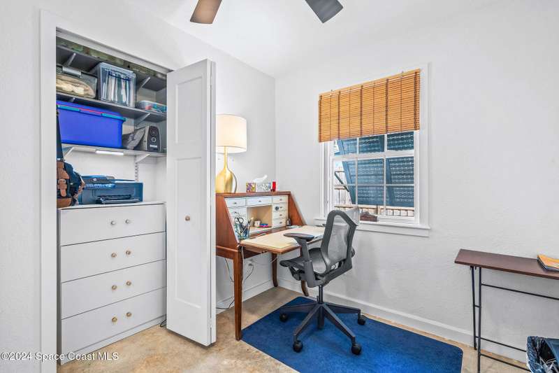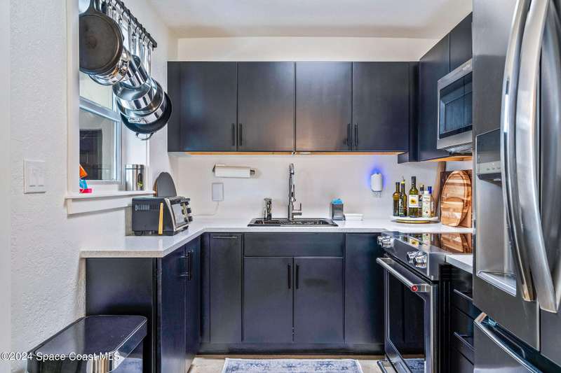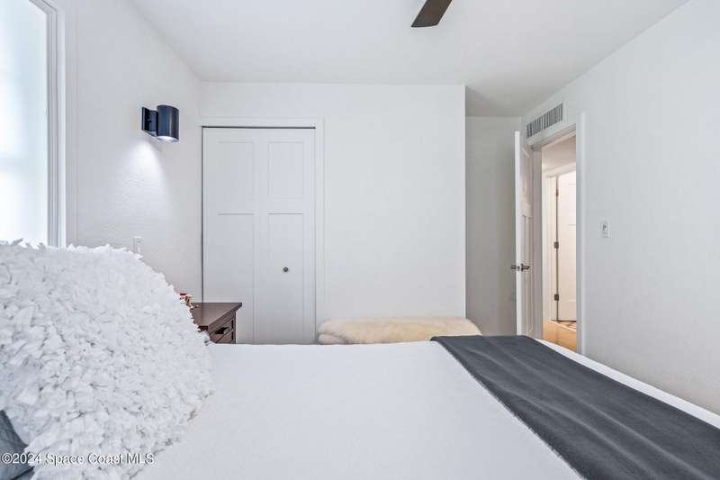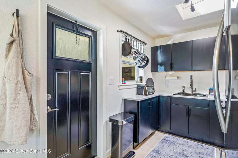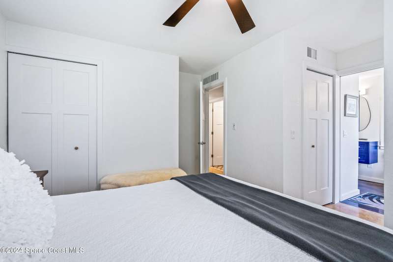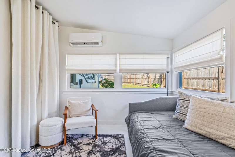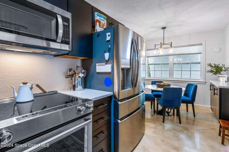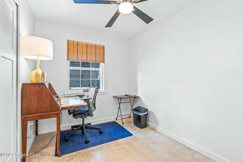 Artfully restored mid-century modern home blending timeless design with modern updates, perfect for downsizers, snowbirds, or STR investors. A newer standing seam white metal roof, impact windows/doors, & rare A-1 insurance rating provide peace of mind and lower insurance costs. Inside, polished concrete floors, vintage-inspired lighting, and custom trim showcase the professional remodel. The chef's kitchen features quartz counters, high-end appliances, Thomasville cabinetry, and a wine cooler drawer. The extended primary suite offers four closets, Indow window inserts for privacy/noise reduction, and a luxurious new bath with double vanities and oversized linen storage. The AC'd guest room adds flexible space for guests or office. Outdoors, enjoy a fenced backyard with a spa-style double shower. With updated systems, full storm protection, and stylish finishes throughout, this home offers low-maintenance living in a prime Vero Beach location.