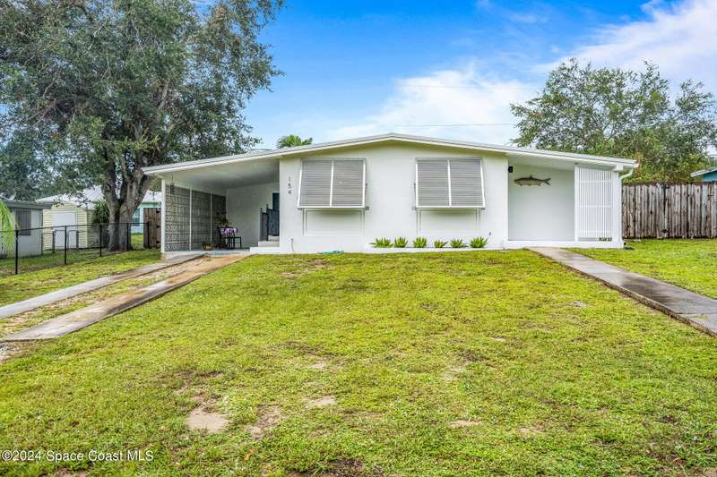 Artfully restored mid-century modern home blending timeless design with modern updates, perfect for downsizers, snowbirds, or STR investors. A newer standing seam white metal roof, impact windows/doors, and rare A-1 insurance rating provide peace of mind and lower insurance costs. Inside, polished concrete floors, vintage-inspired lighting, and custom trim showcase the professional remodel. The chef's kitchen features quartz counters, high-end appliances, Thomasville cabinetry, and a wine cooler drawer. The extended primary suite offers four closets, Indow window inserts for privacy/noise reduction, and a luxurious new bath with double vanities and oversized linen storage. The AC'd guest room adds flexible space for guests or office. Outdoors, enjoy a fenced backyard with a spa-style double shower. With updated systems, full storm protection, and stylish finishes throughout, this home offers low-maintenance living in a prime Vero Beach location.